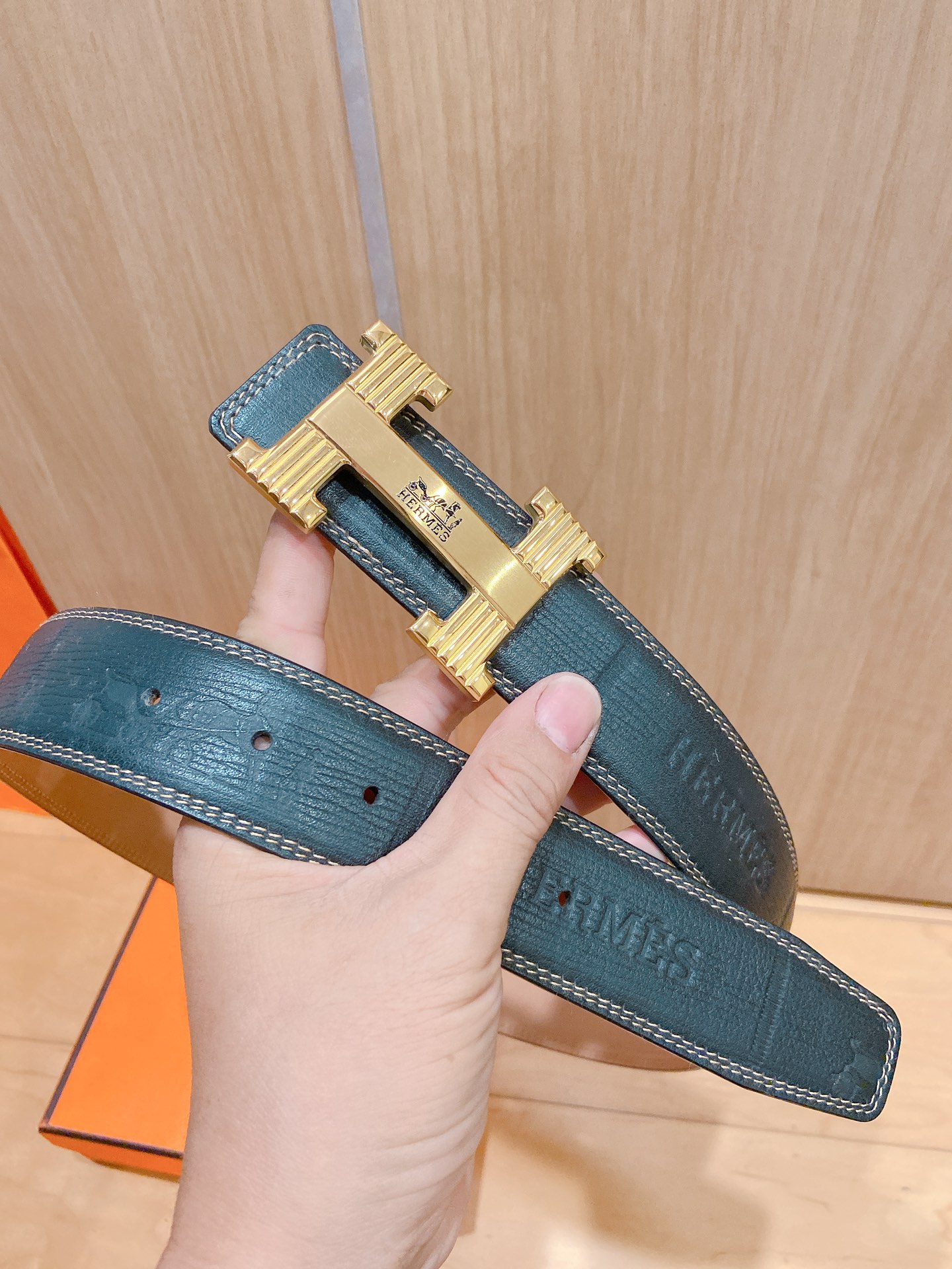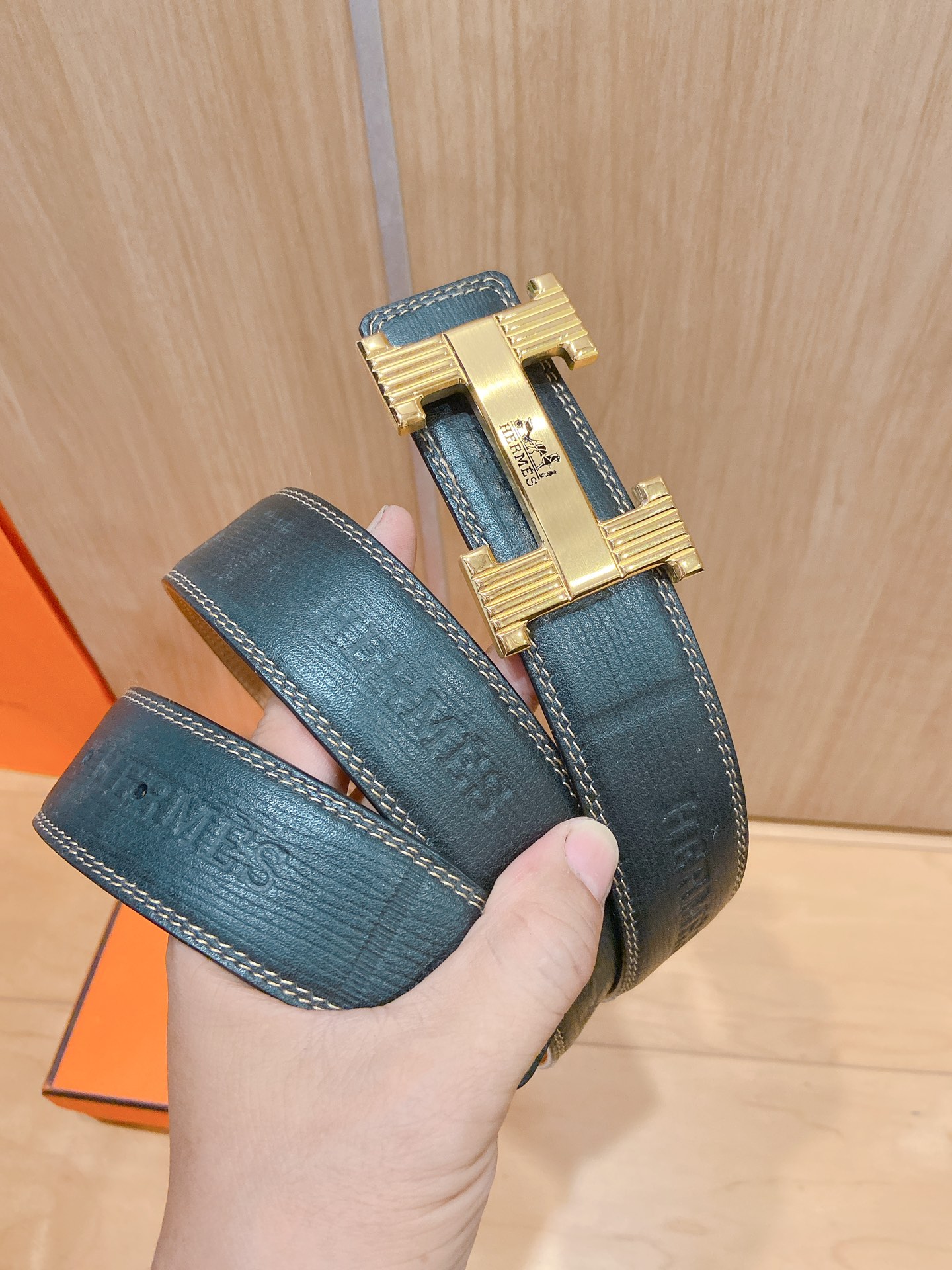 Belt Hermes shark skin pattern cm double-sided original leather, Hermes special steel buckle,