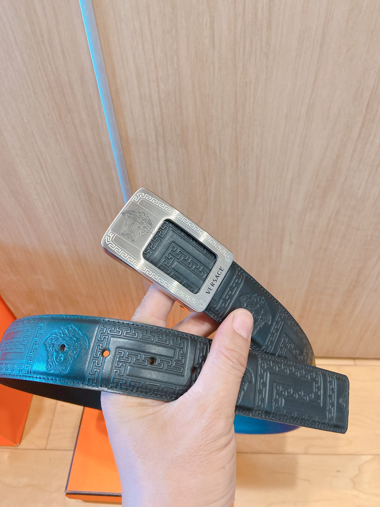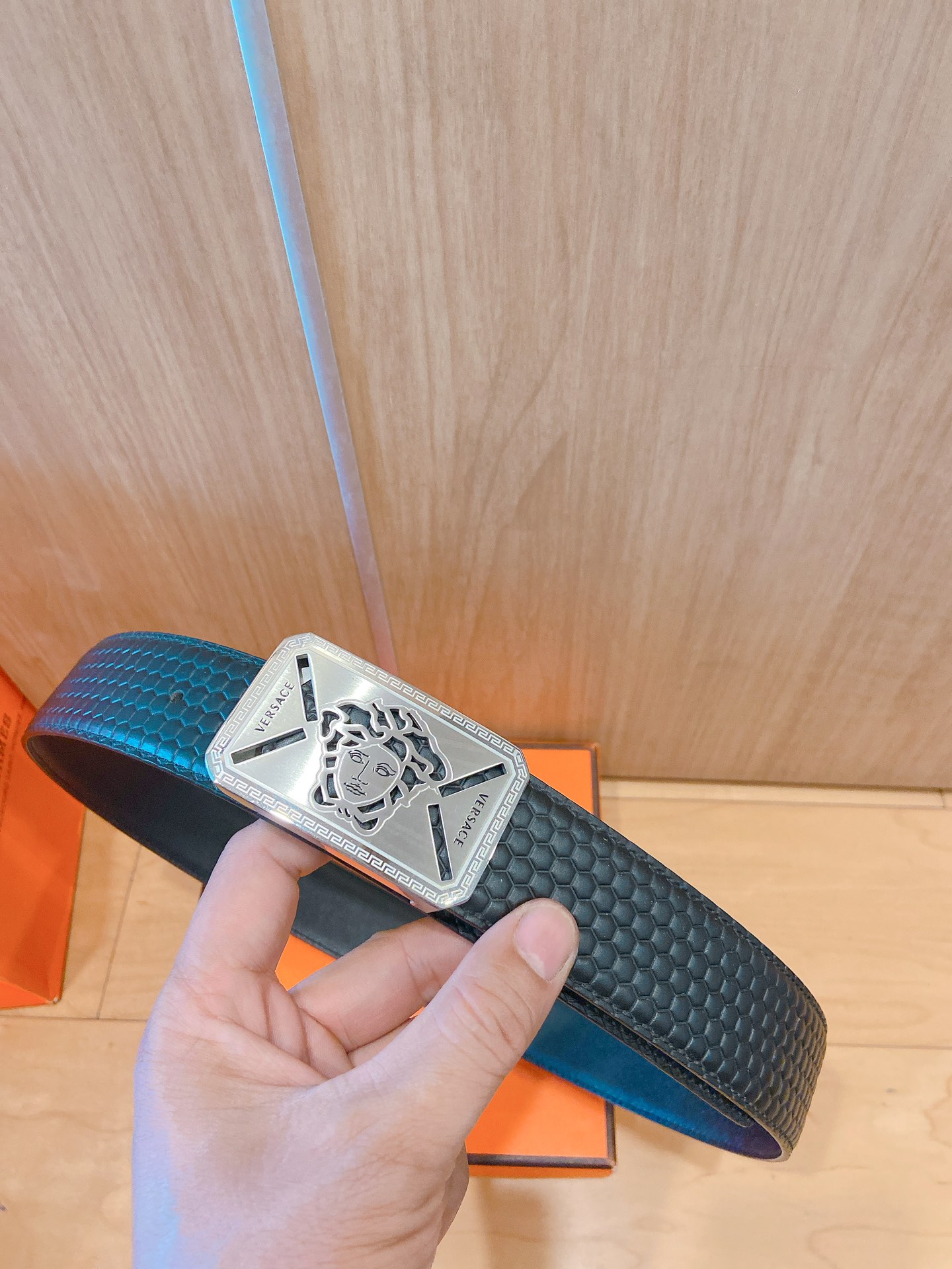 Versace steel buckle imported leather, high-end original belt, available at European counters, double-sided Italian imported first-layer cowhide, wide, original high