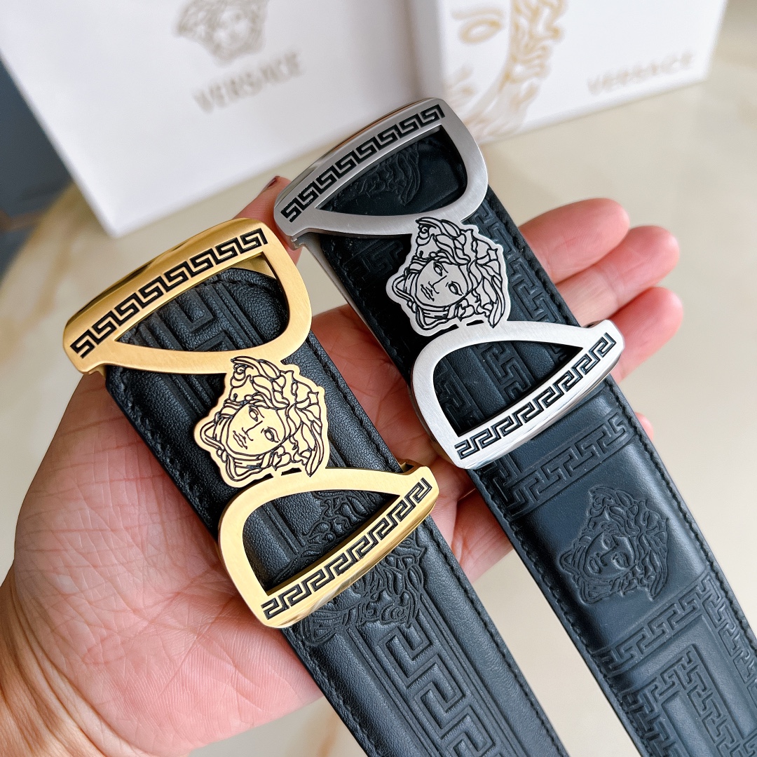 Versace steel buckle imported leather, high-end original belt, available at European counters, double-sided Italian imported first-layer cowhide, wide, original high