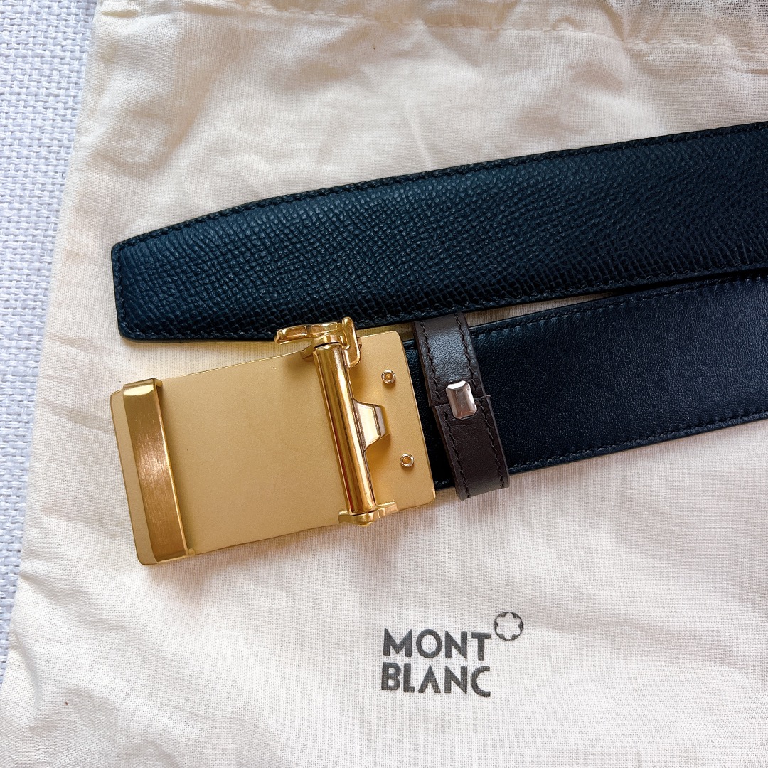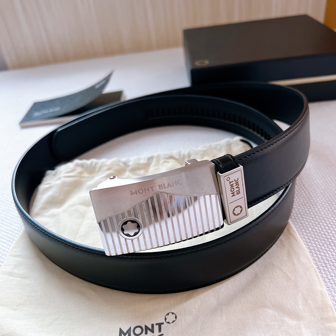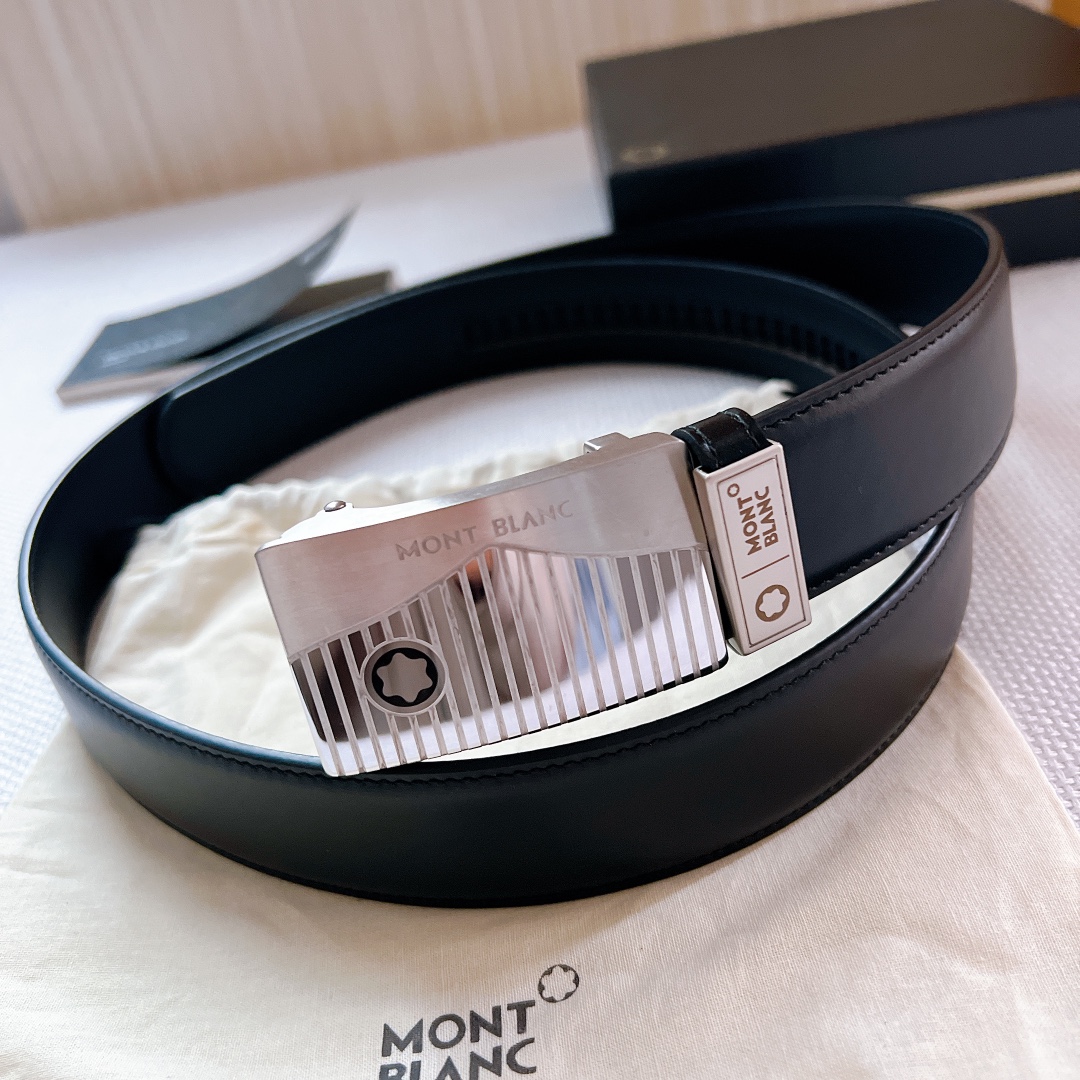 Montblanc Steel Buckle Original Inner Buckle Men’s Stainless Steel Sliding Buckle Belt, Montblanc Striped Automatic Head Calfskin Belt. D