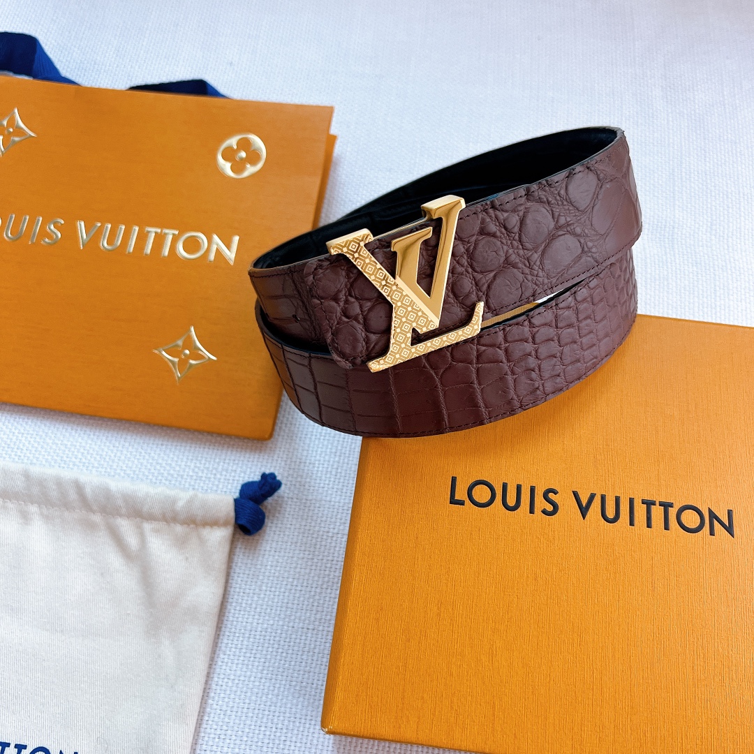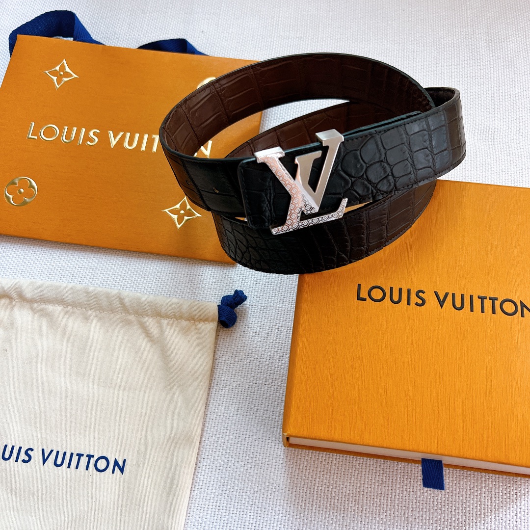 LV Initiales 40 mm exclusive sale, new hollow steel buckle, double-sided black coffee crocodile pattern, counter belt with double-sided style
