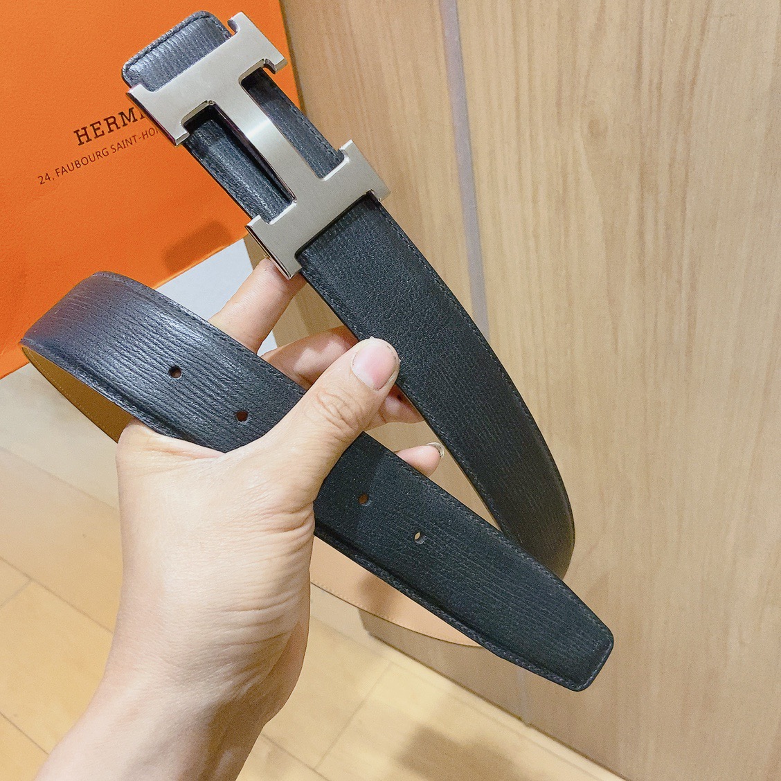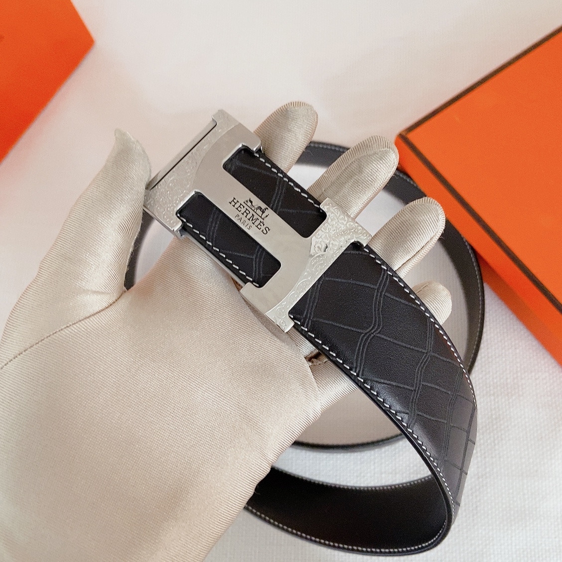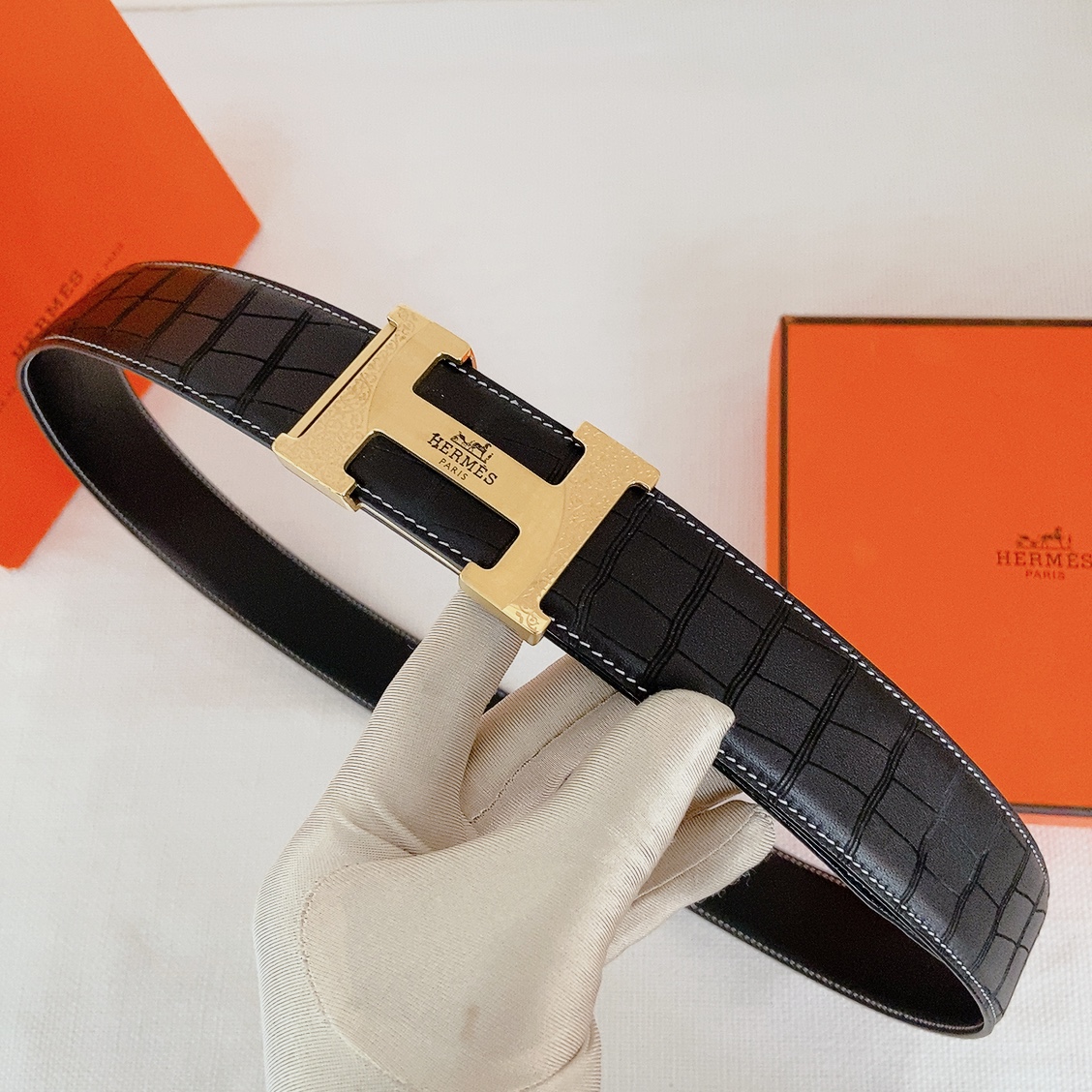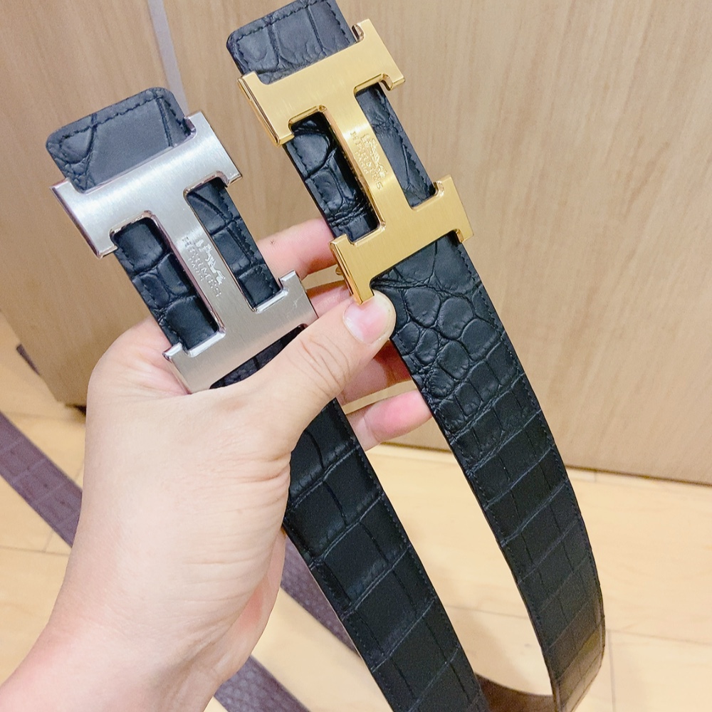 Hermes black-faced double crocodile, double-sided original leather, Hermès special steel buckle, the belt adopts the latest elements of Hermès counters,