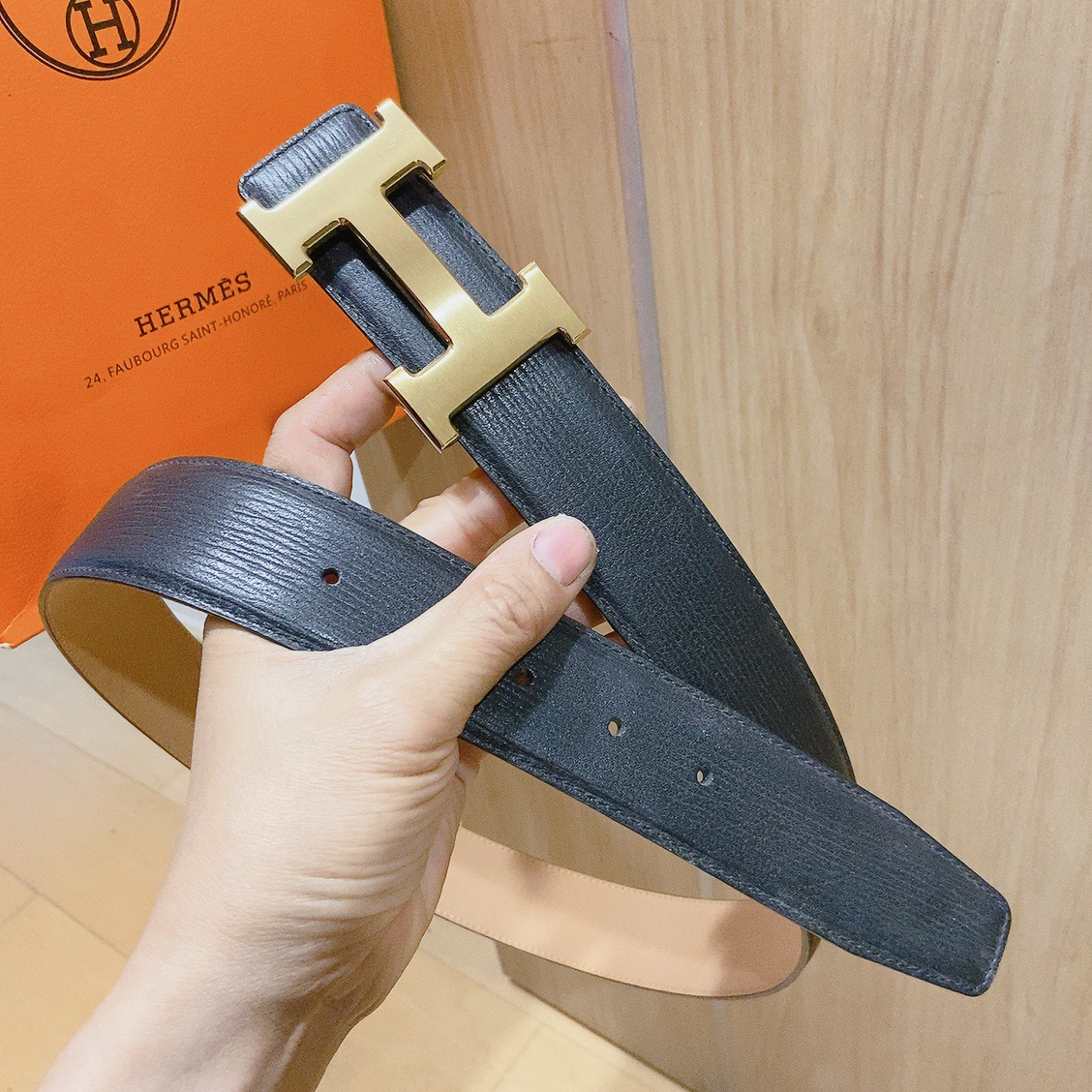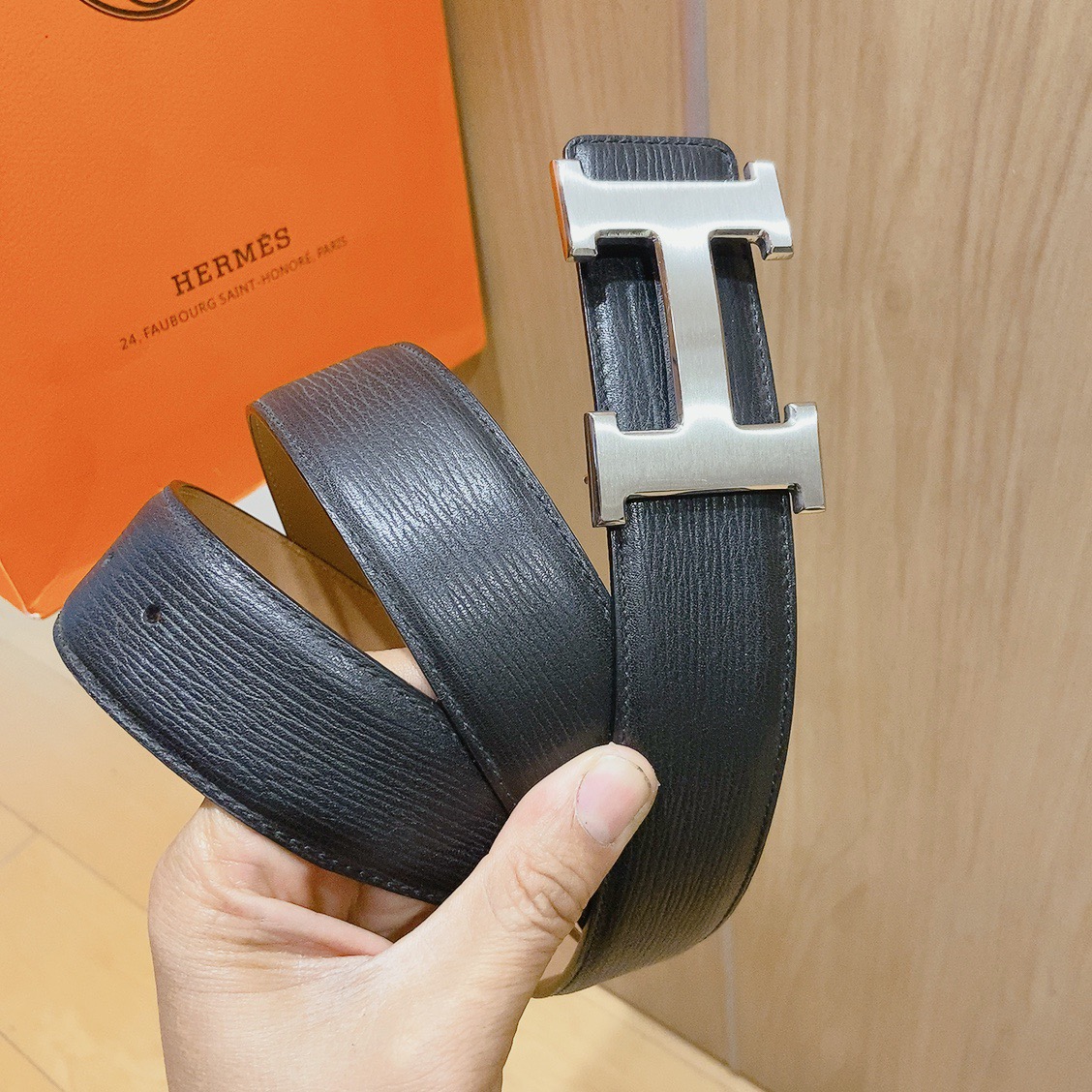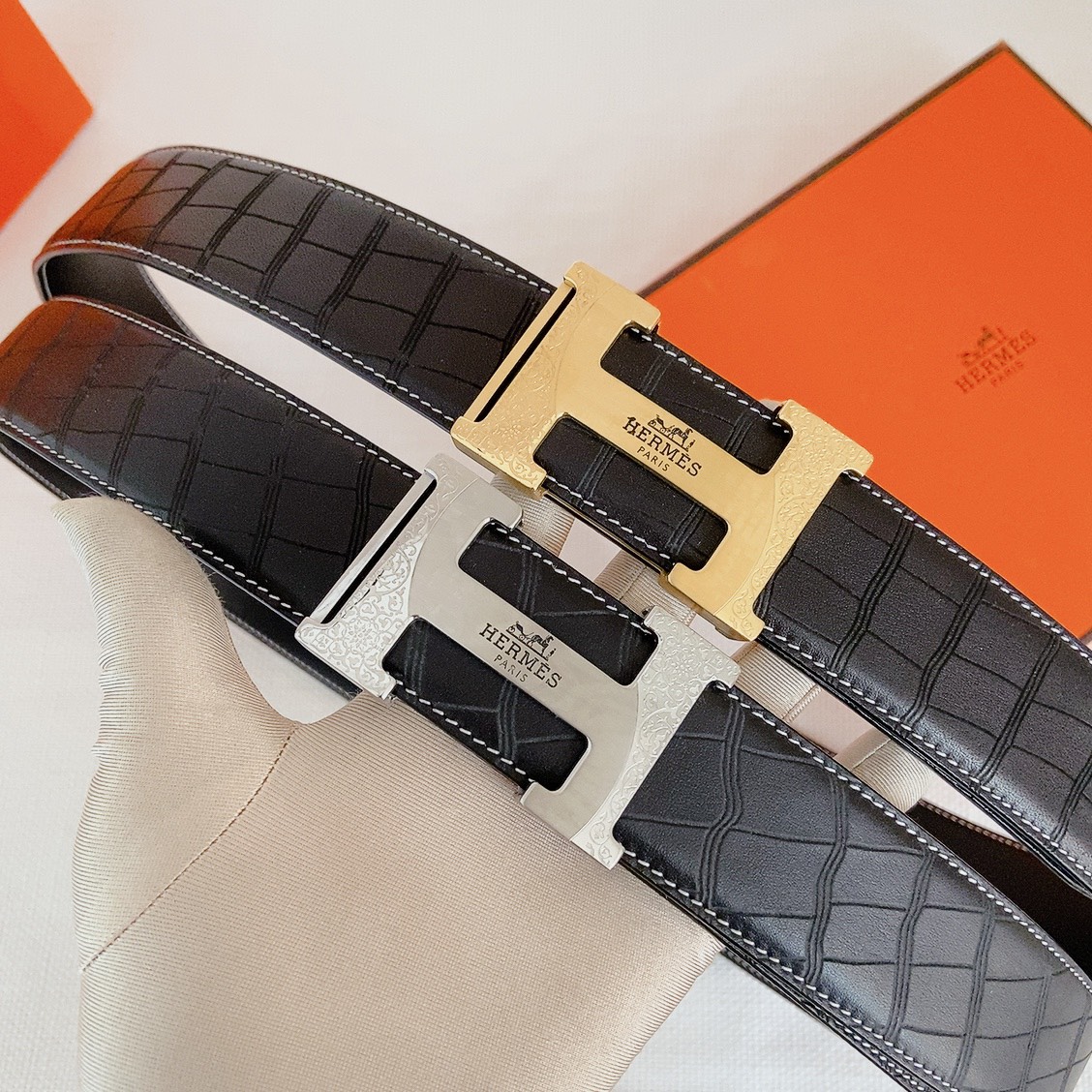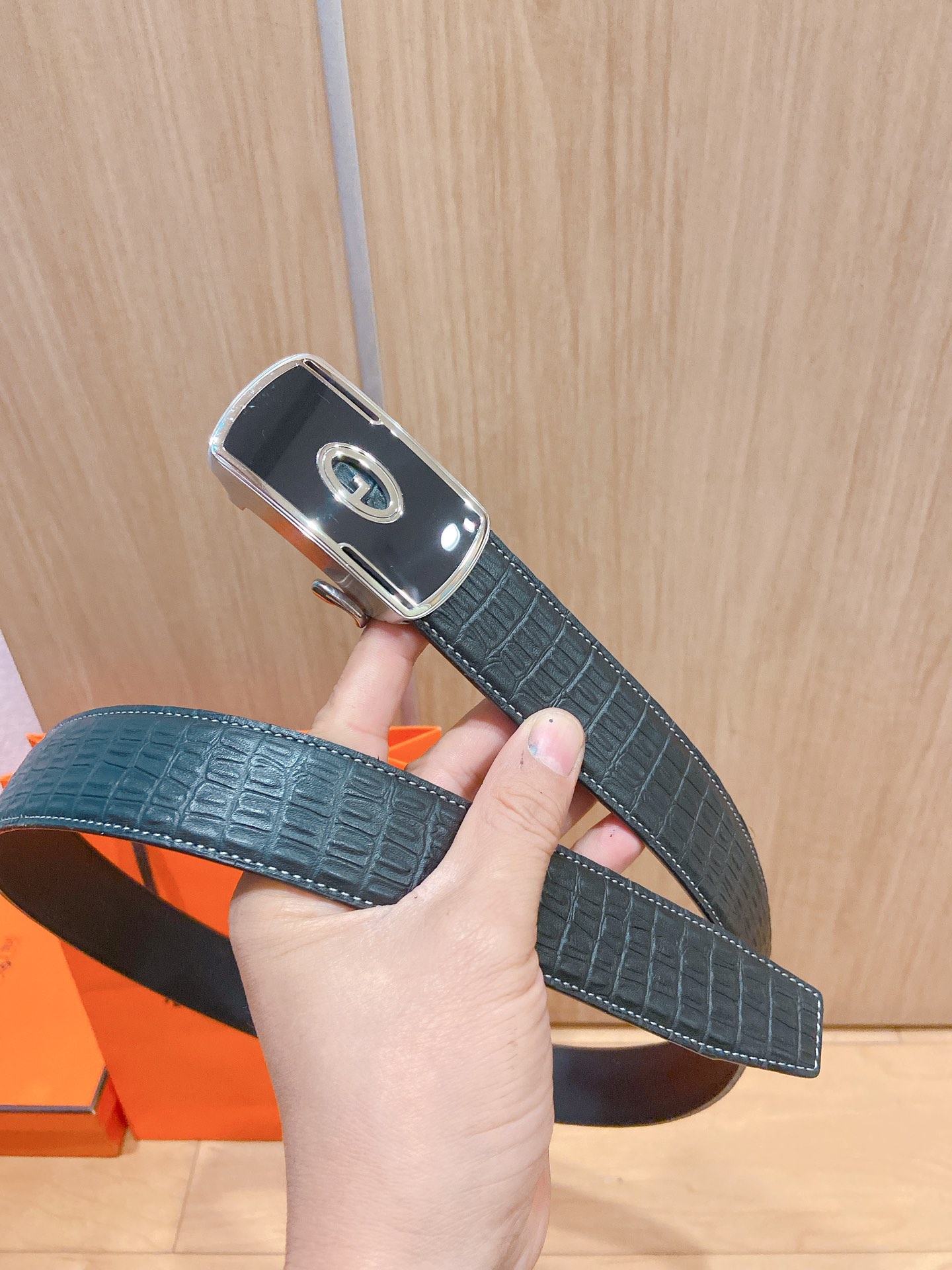Hermes black-faced double crocodile, double-sided original leather, Hermès special steel buckle, the belt adopts the latest elements of Hermès counters,