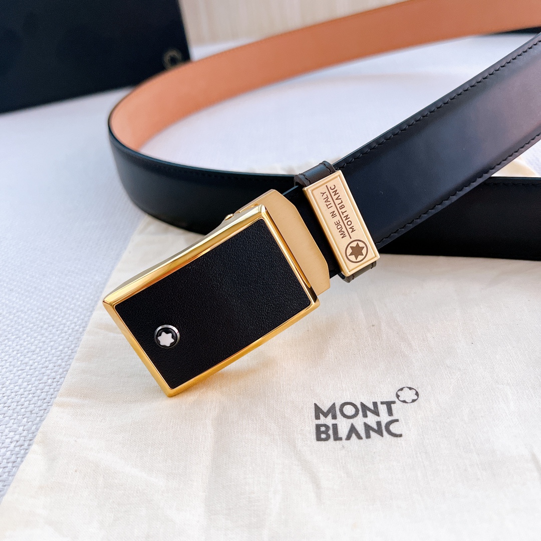 Belt Montblanc Steel Buckle Original Inner Buckle Men’s Stainless Steel Slide Buckle Belt, Montblanc Striped Automatic Head Calfskin