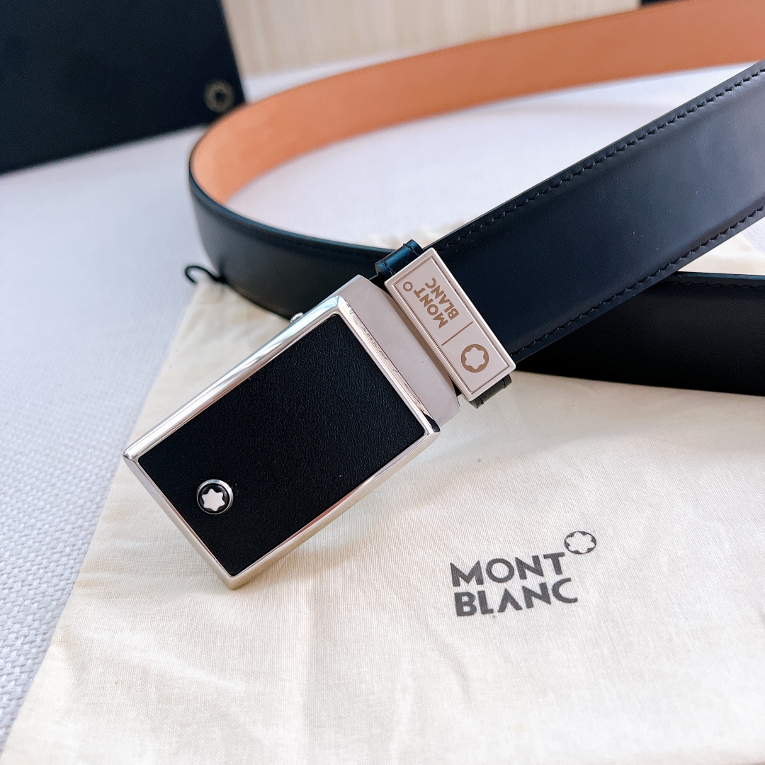 Montblanc Steel Buckle Original Inner Buckle Men’s Stainless Steel Sliding Buckle Belt, Montblanc Striped Automatic Head Calfskin Belt. D