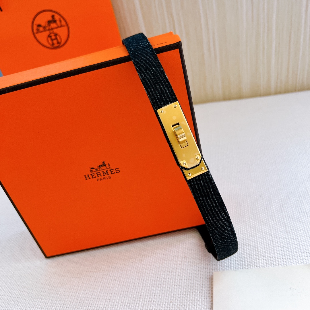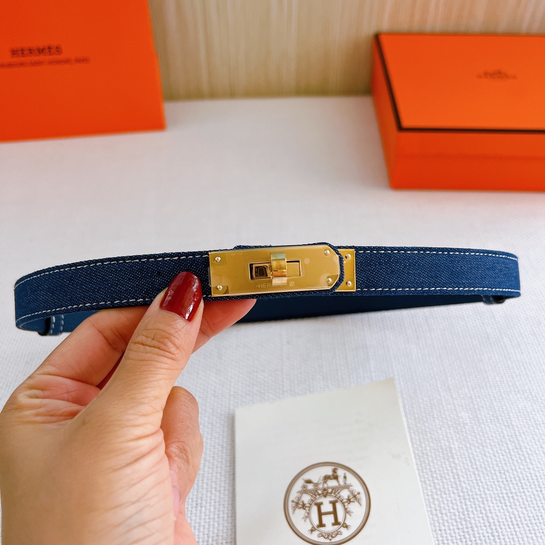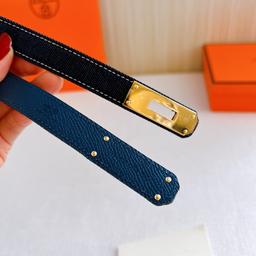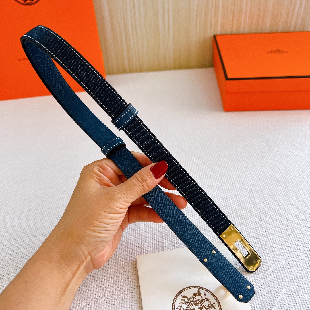 Belt ke lly belt Epsom calfskin denim belt with gold Kelly leather