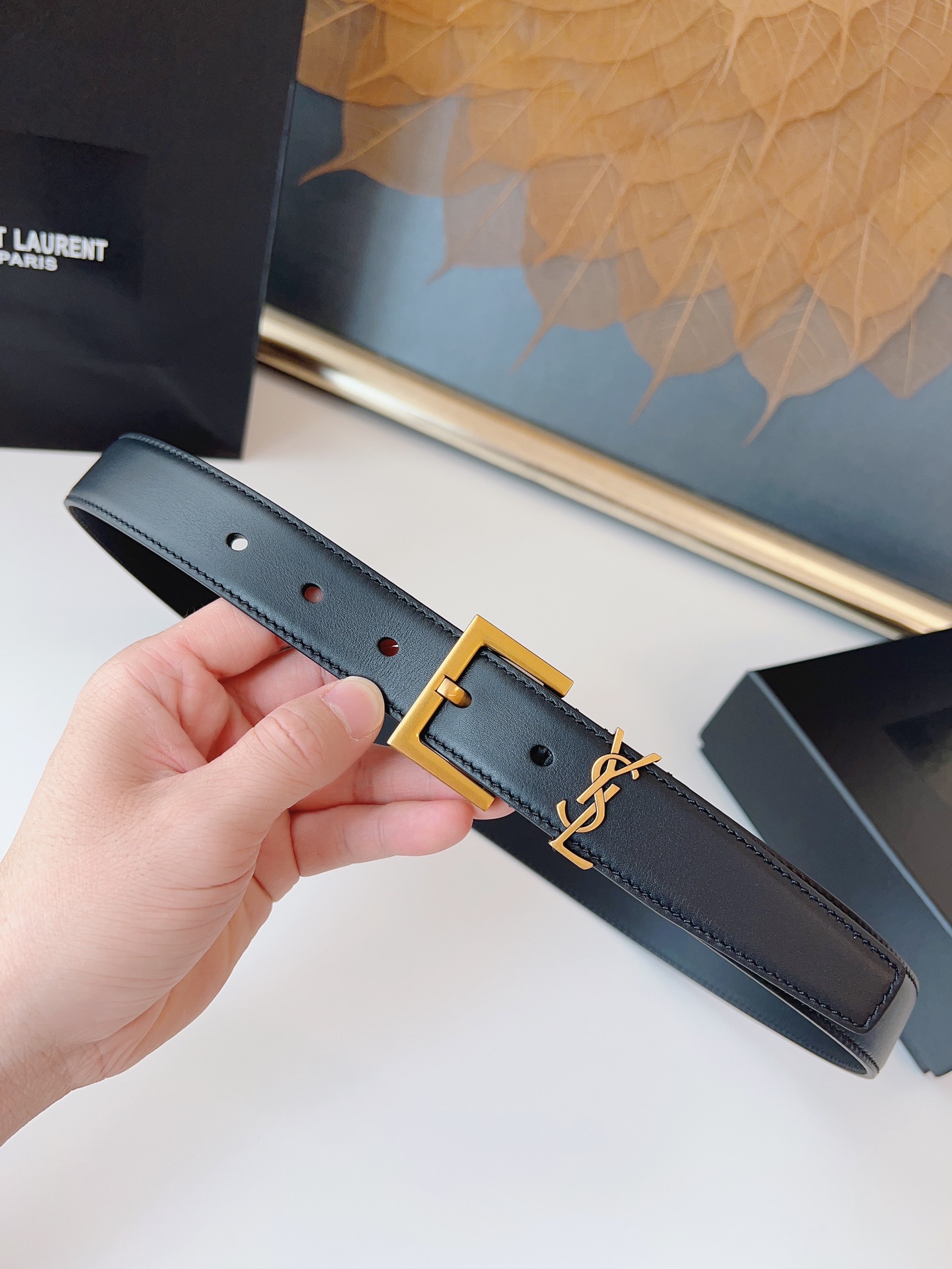 P Saint Laurent women’s belt, plain calfskin imported from Italy, YSL original molded vintage gold buckle, size cm, fashionable, versatile
