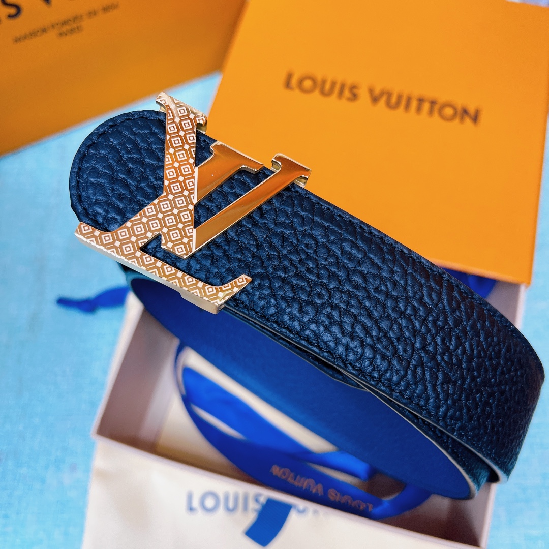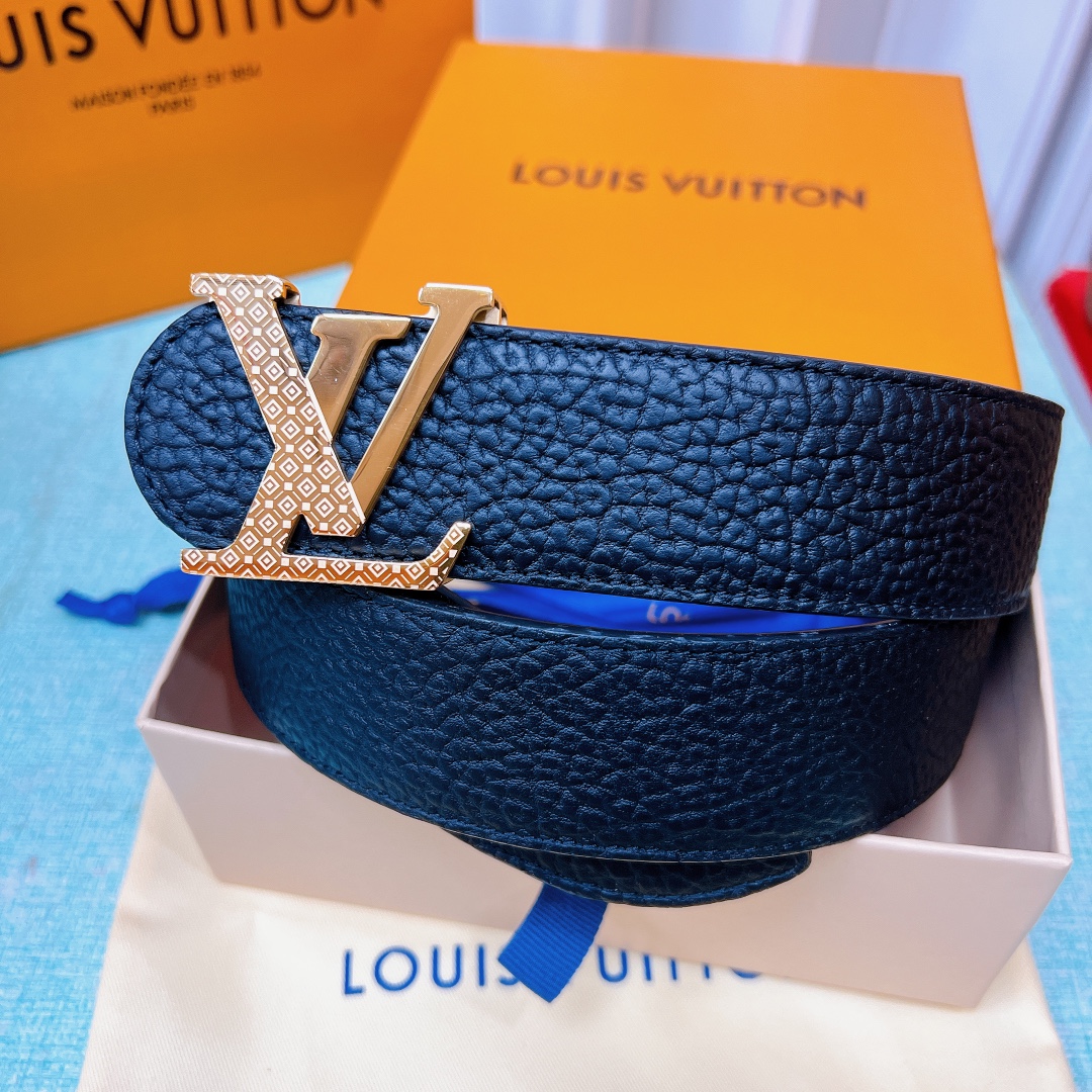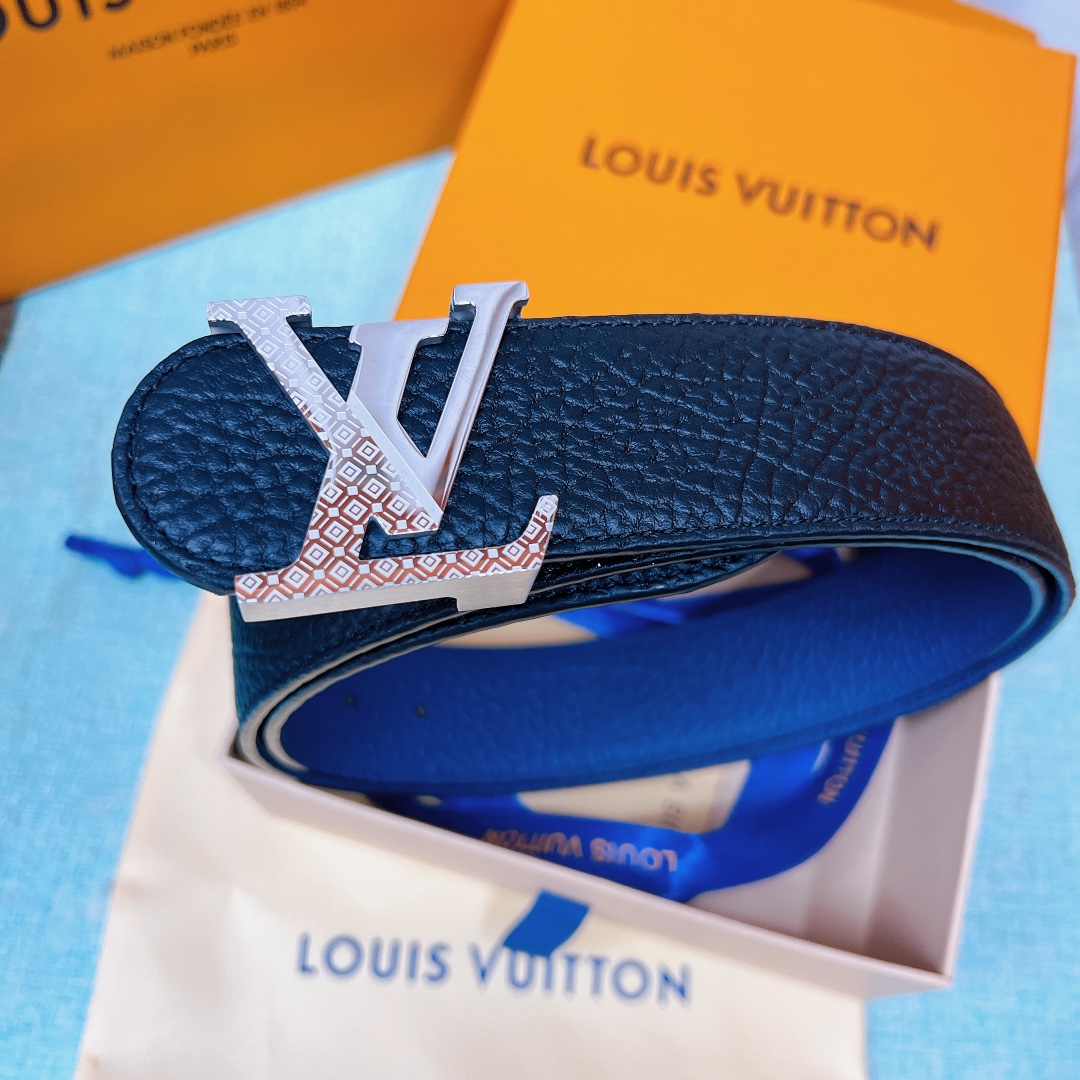 Belt LV Initiales 40mm new hollow steel buckle counter double-sided black and blue elephant pattern belt