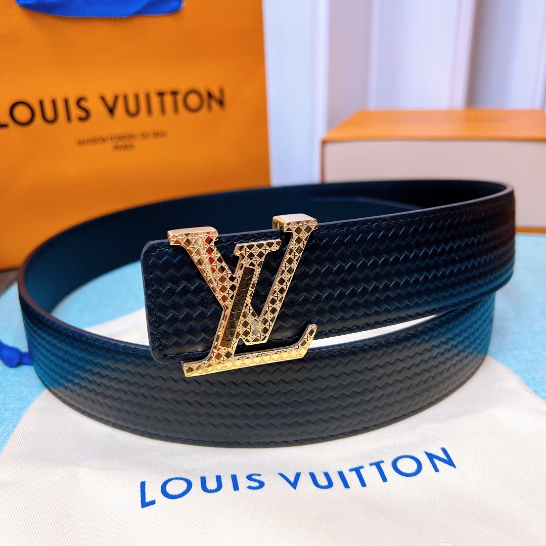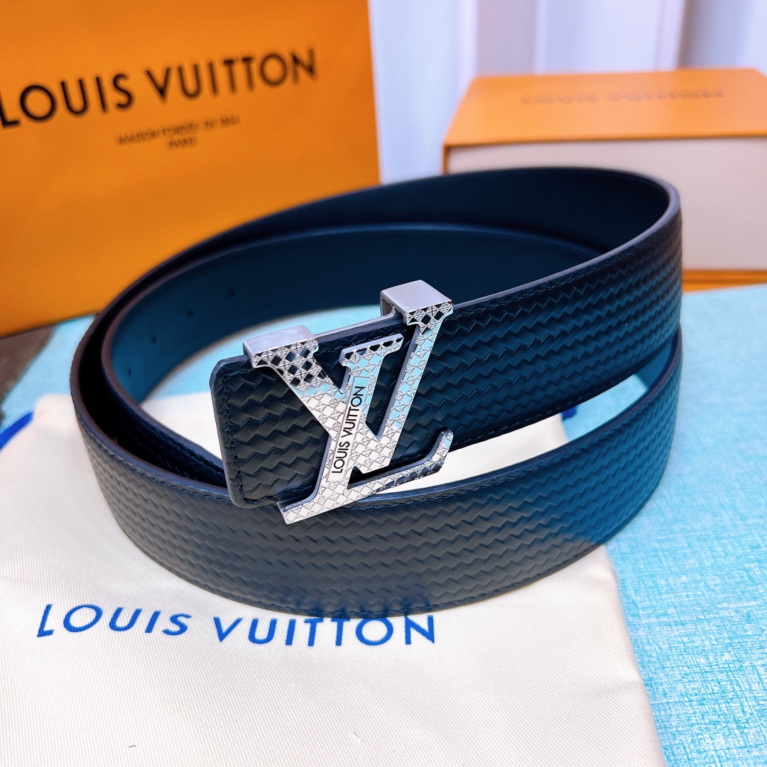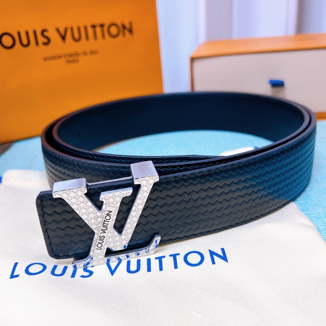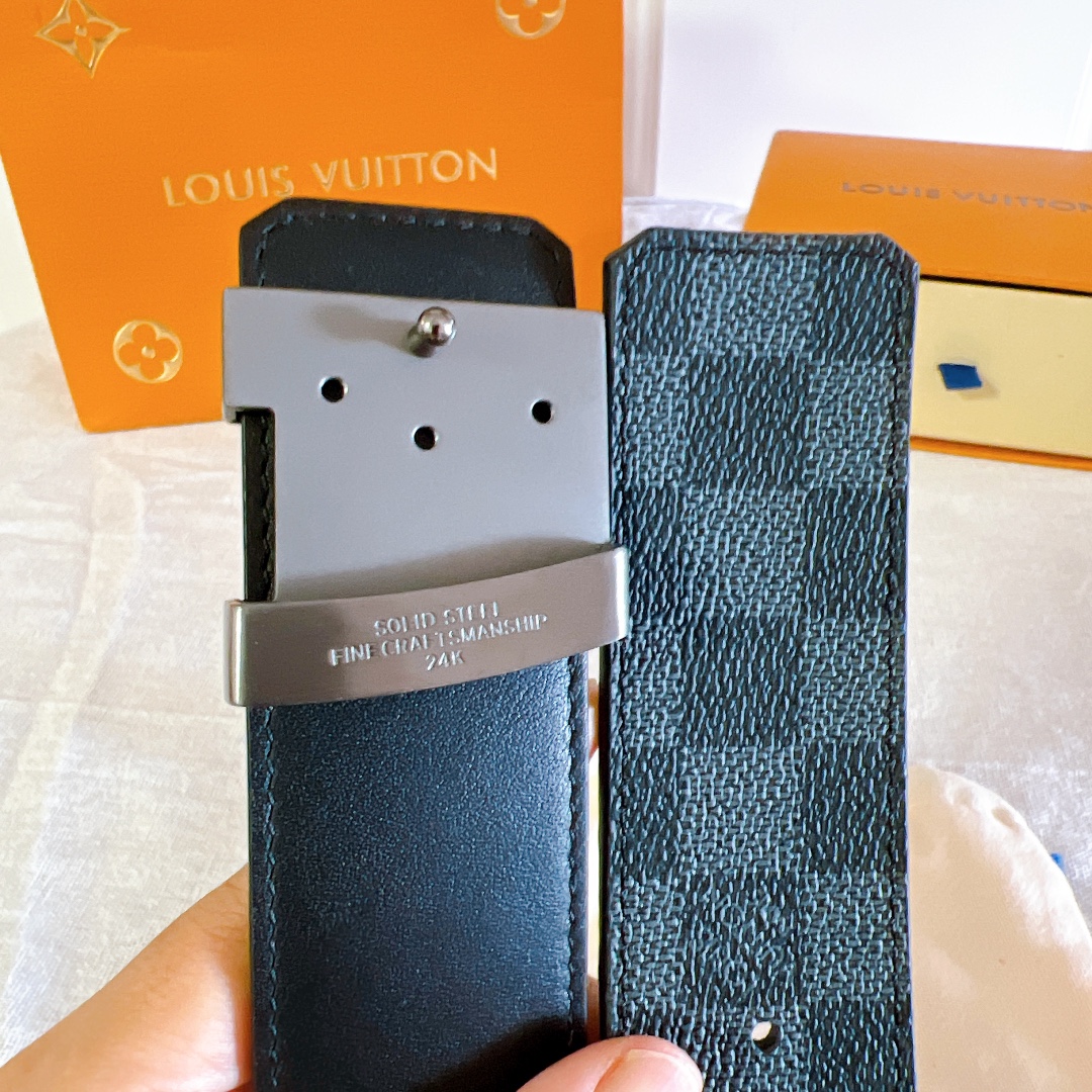 Belt LV Initiales 40mm new hollow steel buckle counter double-sided black and blue elephant pattern belt