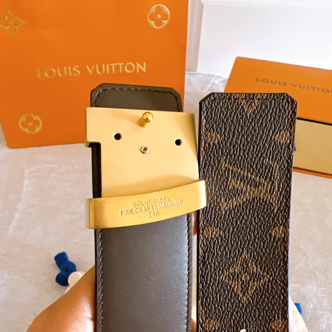 LV Initiales 40mm new hollow steel buckle counter double-sided pattern belt interprets two classic styles with double-sided style: Monogram shows