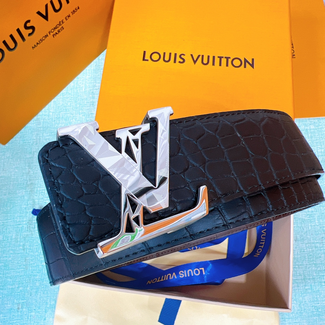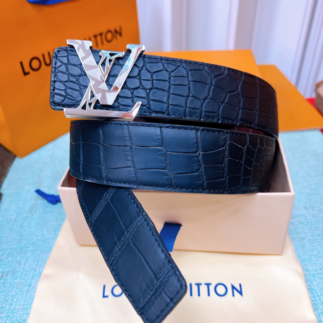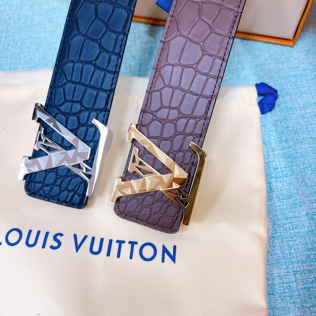 Belt LV Initiales 40mm new hollow steel buckle counter double-sided black coffee crocodile pattern belt