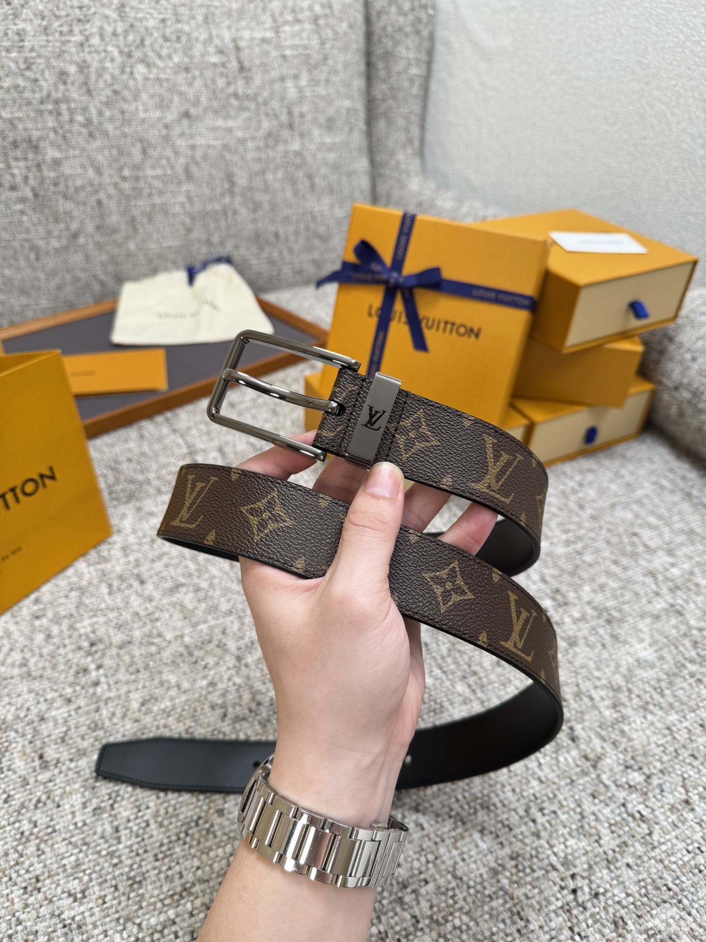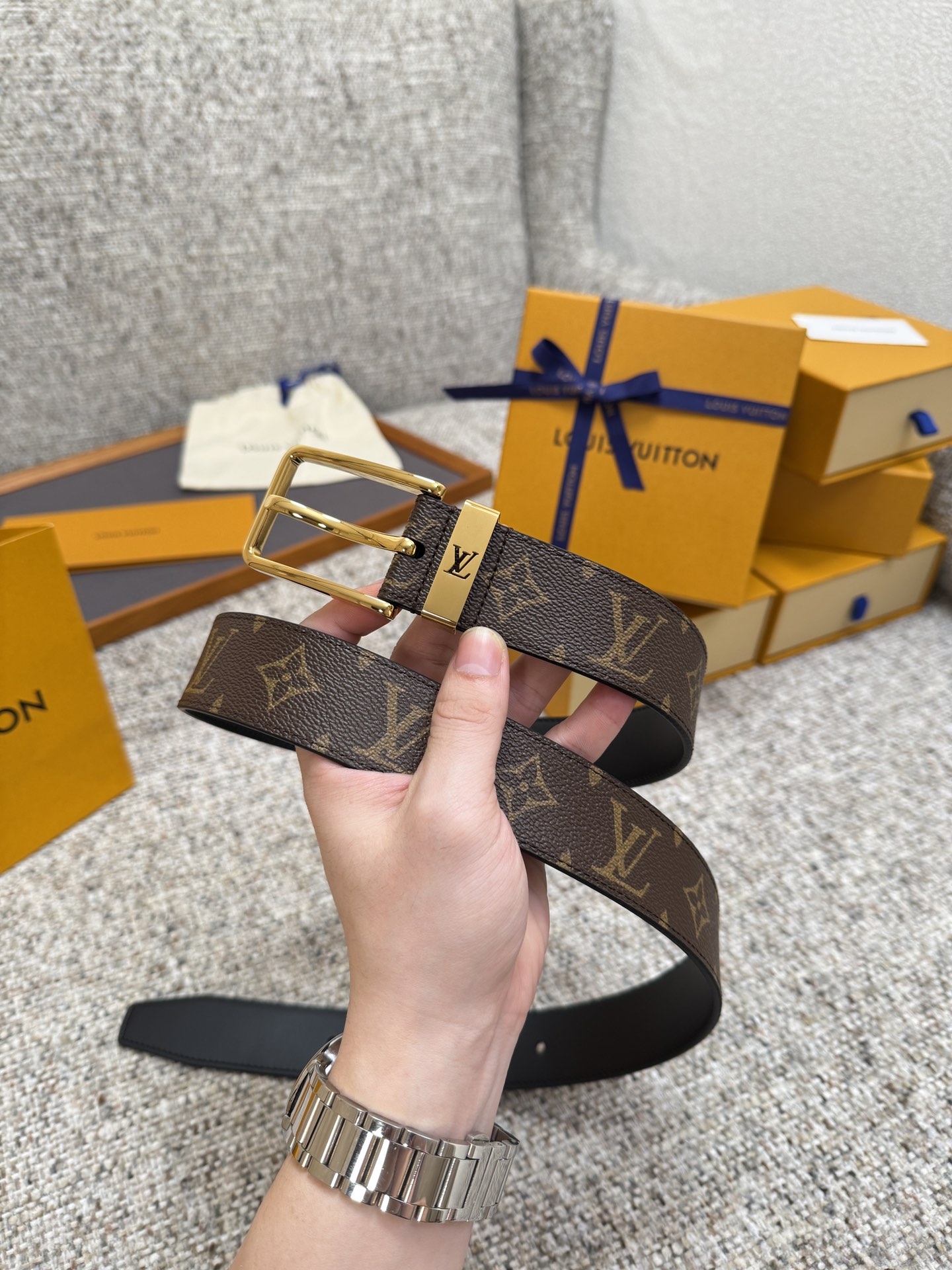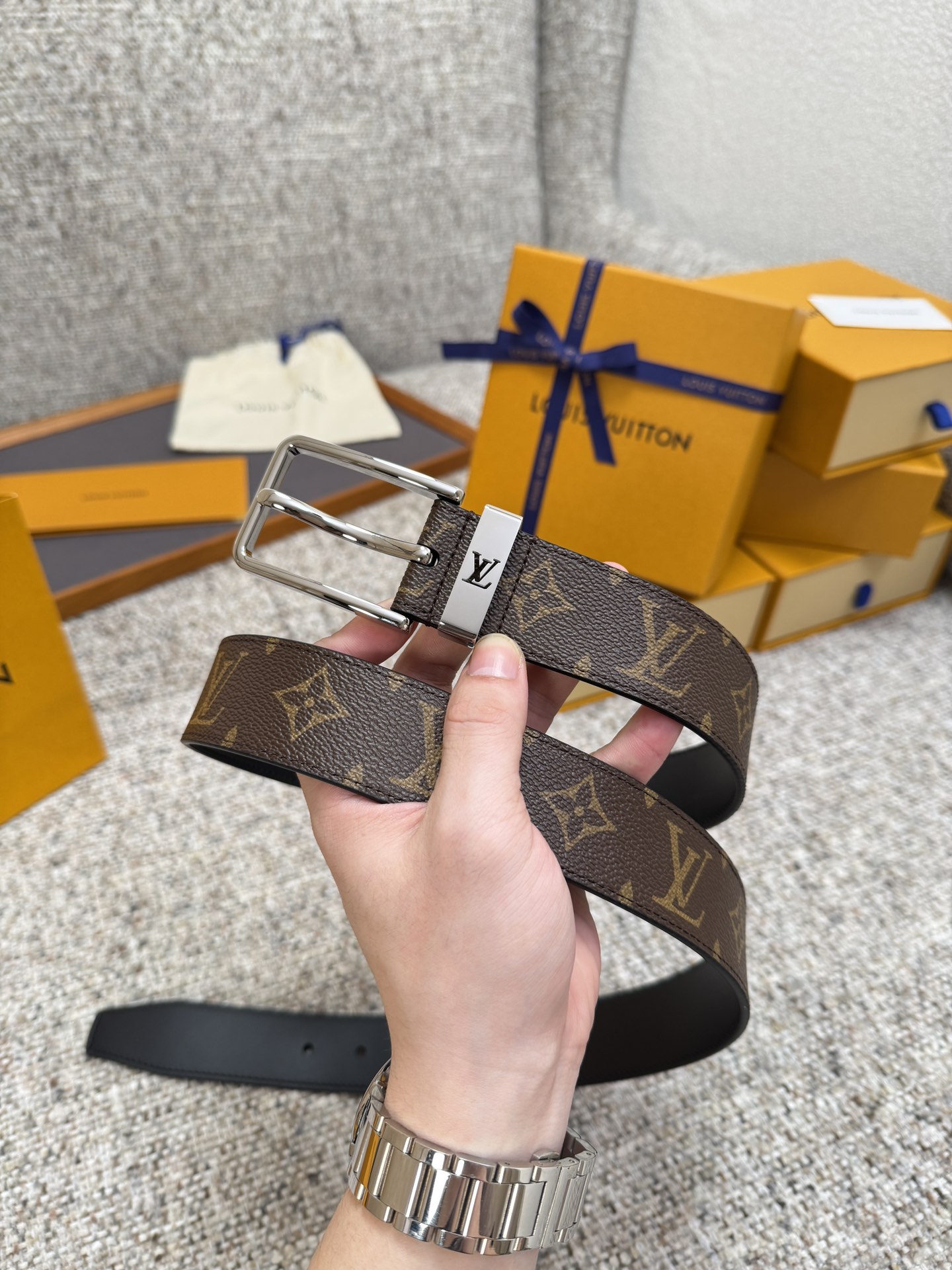 Louis Vuitton LV belt series, original hardware, exquisite hand-painted edges, soft and comfortable, wide D