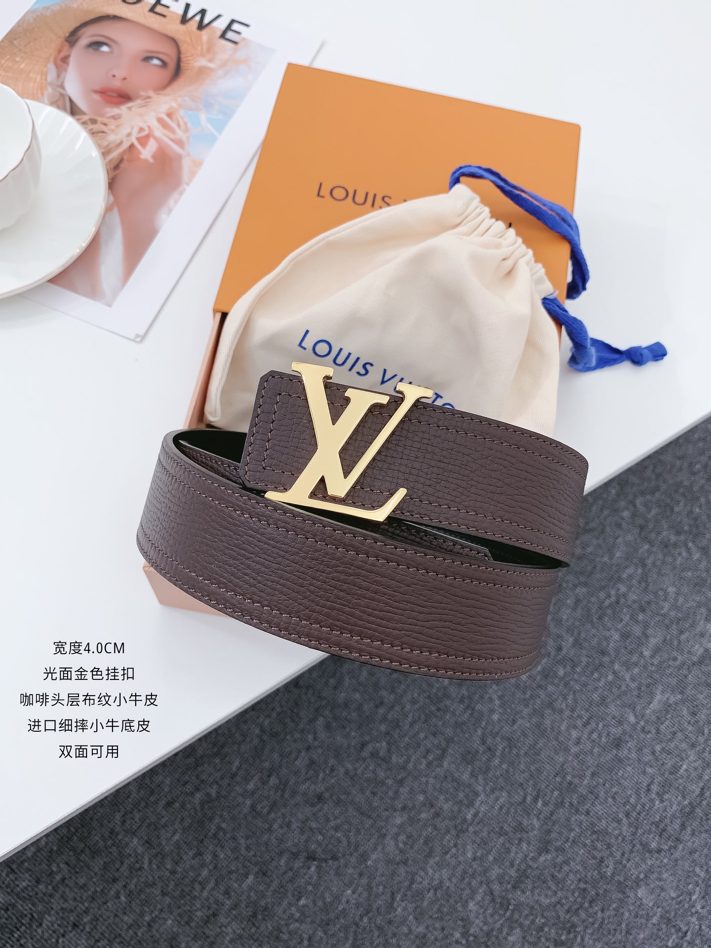 LV Initiales 40 mm new English steel buckle printed double-sided cowhide leather sole counter belt double-sided fashion interprets two classics: