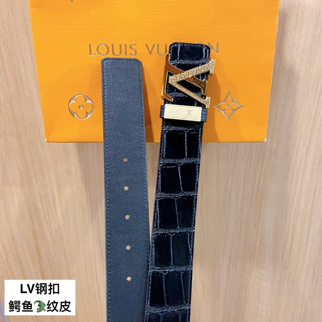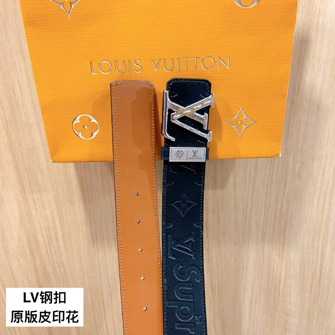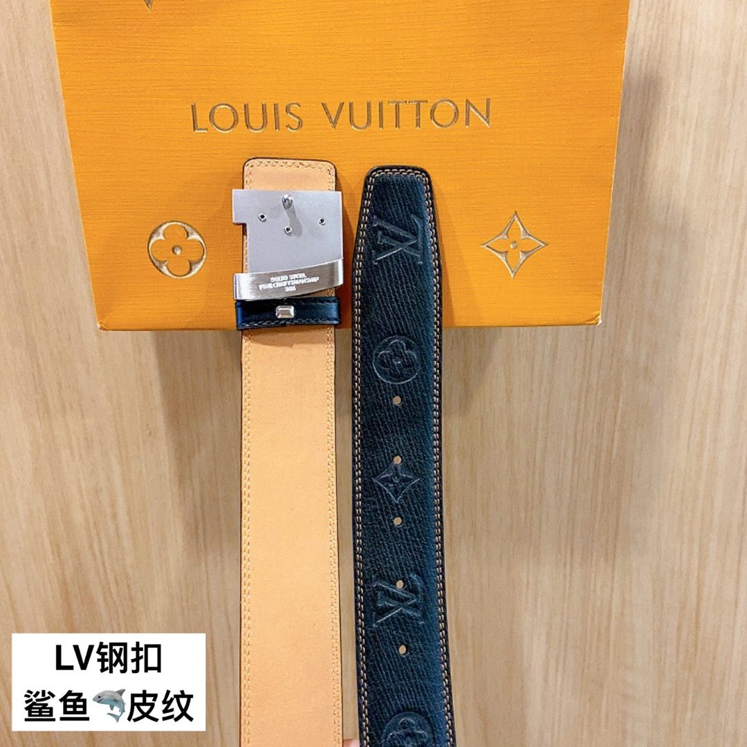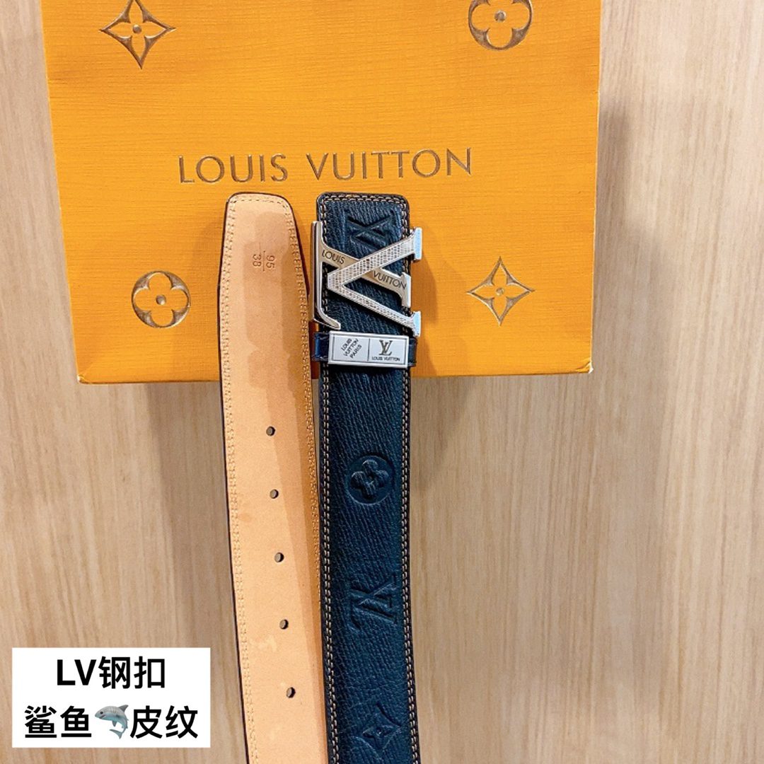 Belt LV Initiales 40mm new English steel buckle counter belt leather, shark🦈