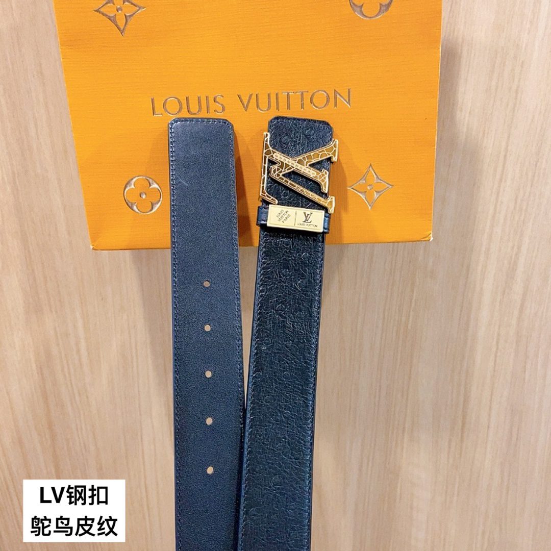 Belt LV Initiales 40 mm new English steel buckle counter belt ostrich pattern leather bottom pair