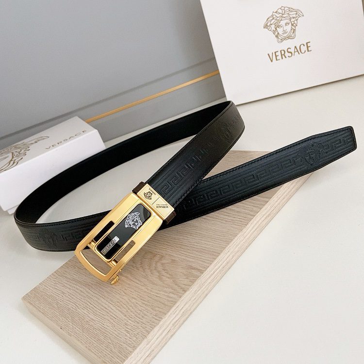 Versace automatic belt with steel buckle, this Greek key embossed belt is equipped with an eye-catching Medusa head buckle, which
