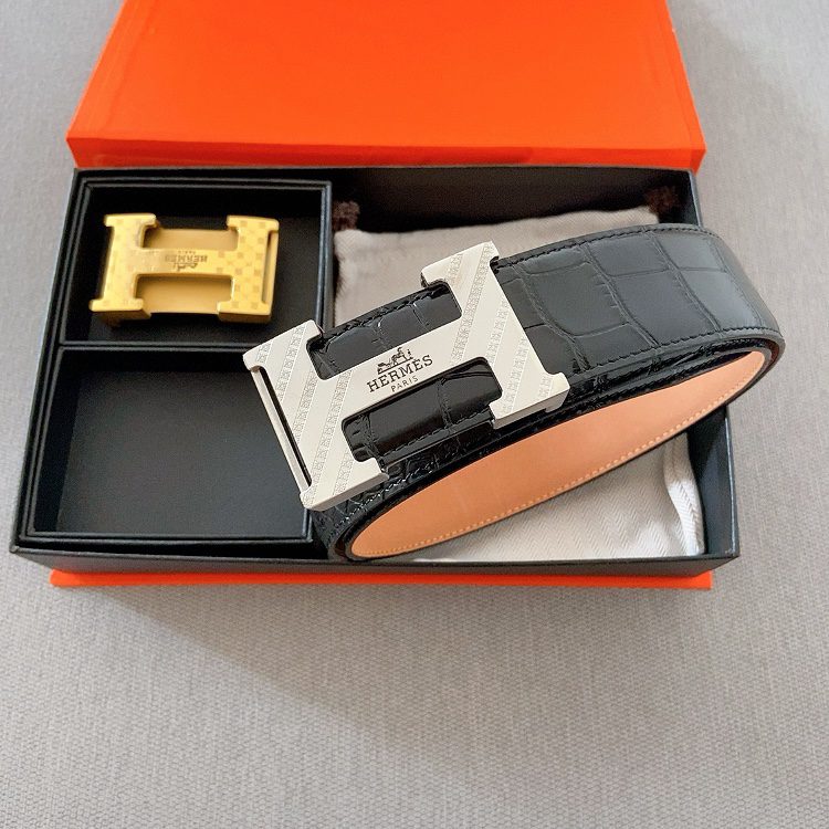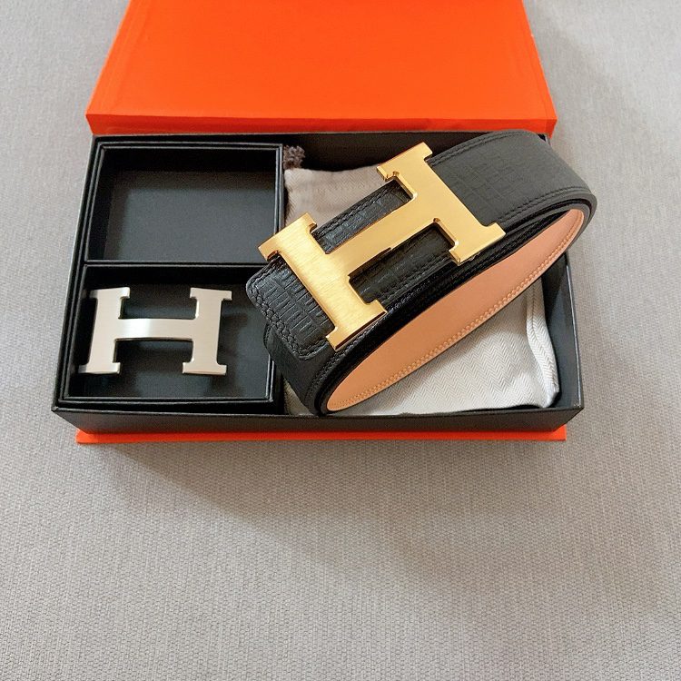 Belt Hermes cm double-sided original leather, double line leaf pattern, Hermes special steel