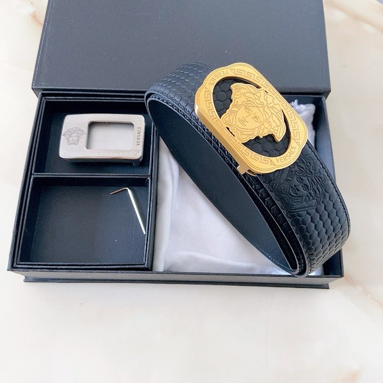 Versace double buckle, high-end original single belt, available at European counters, double-sided Italian imported first-layer cowhide, wide, original single high
