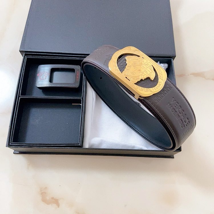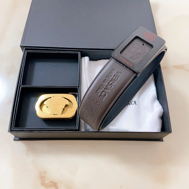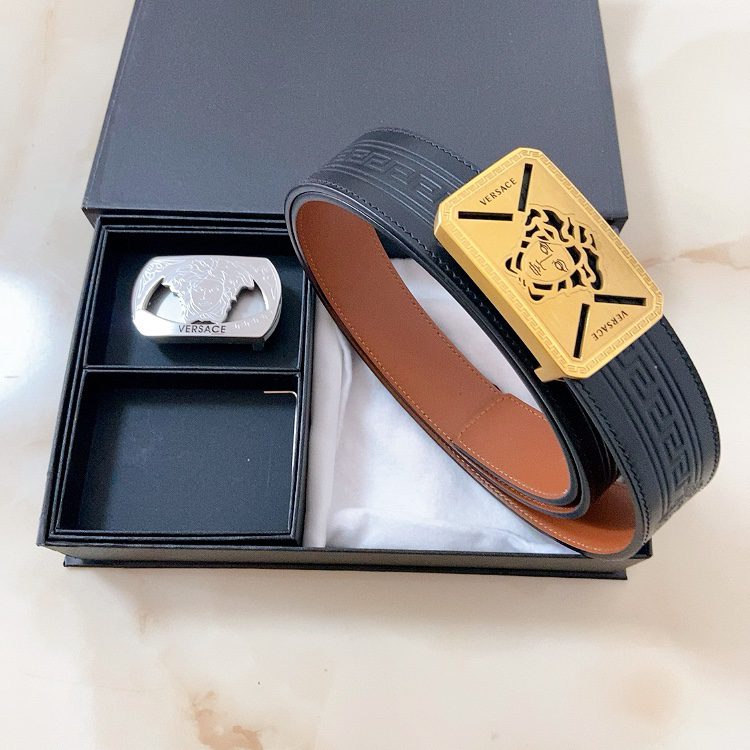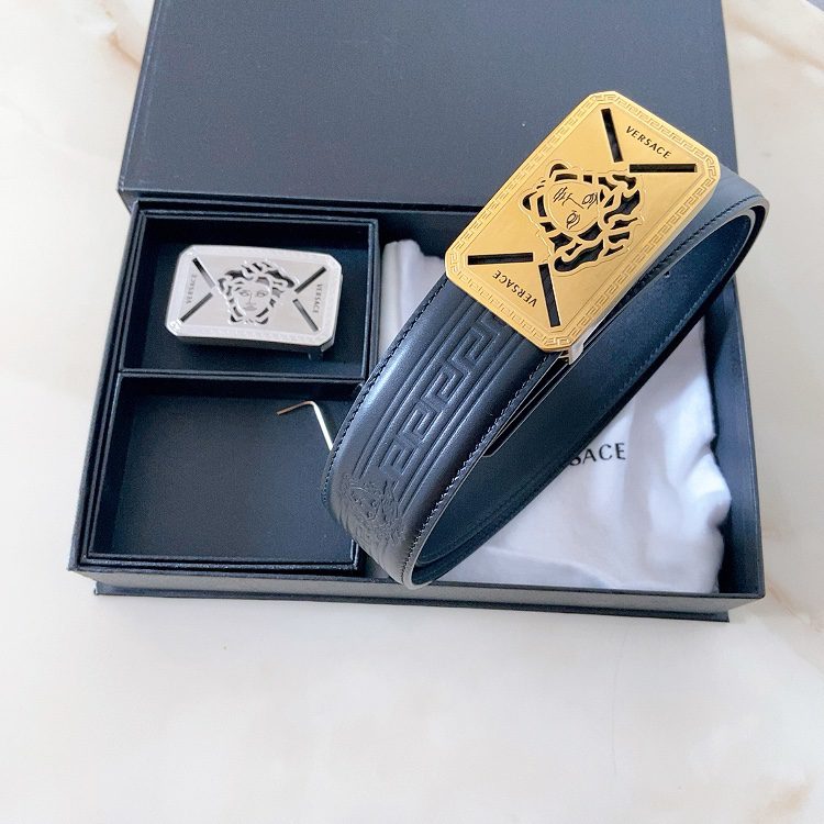 Versace double buckle, high-end original single belt, available at European counters, double-sided Italian imported first-layer cowhide, wide, original single high