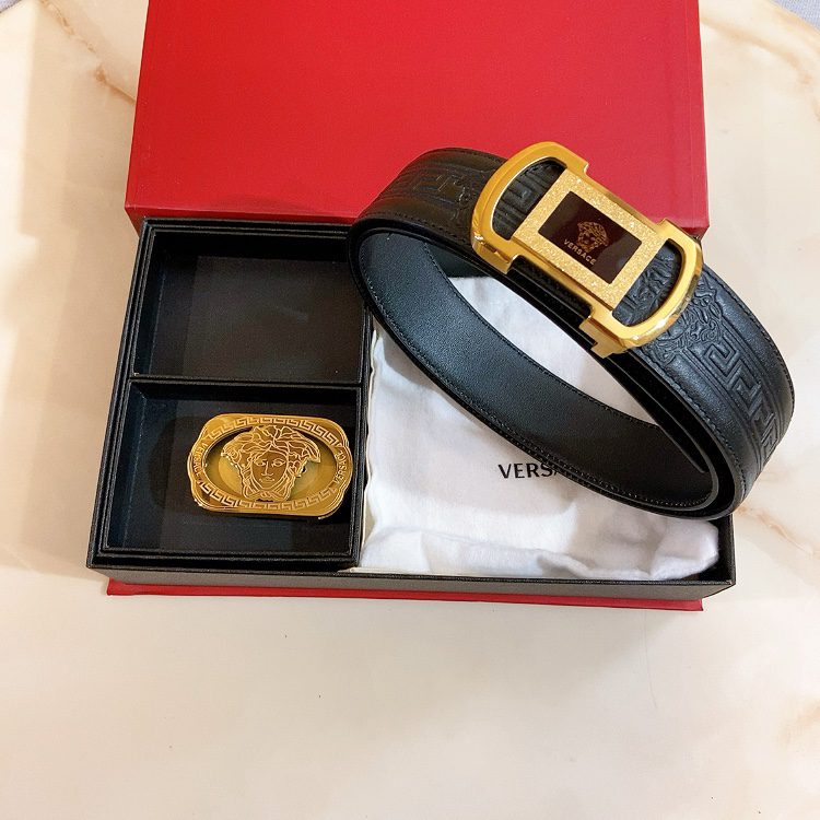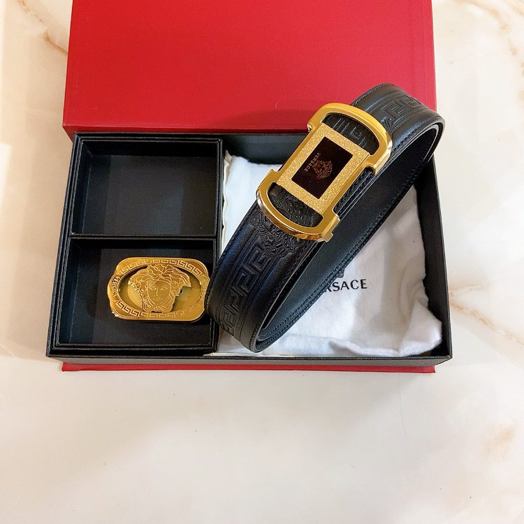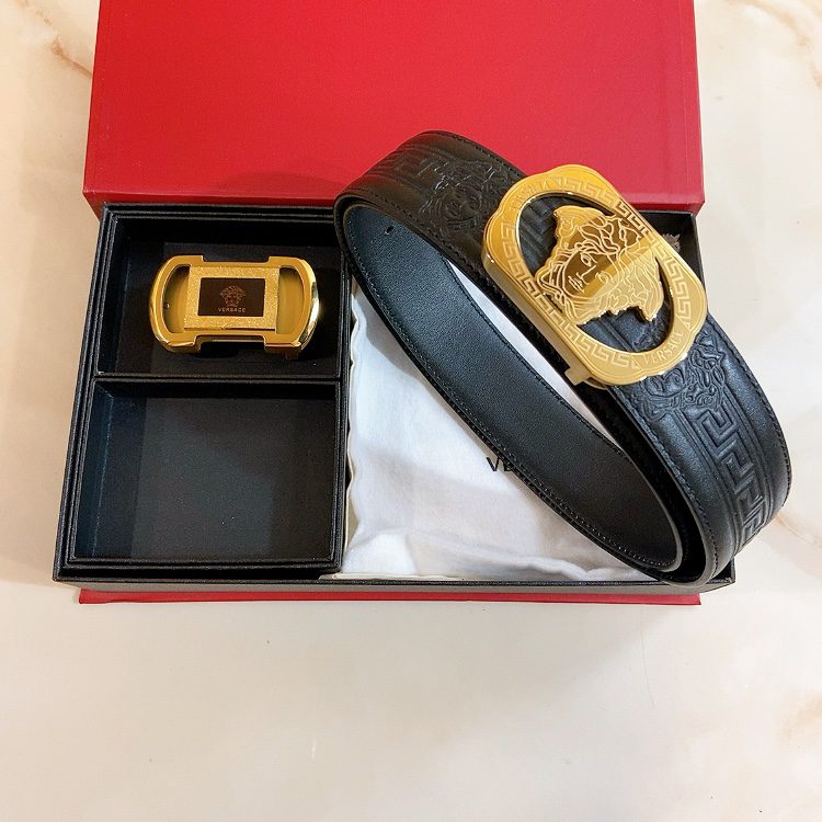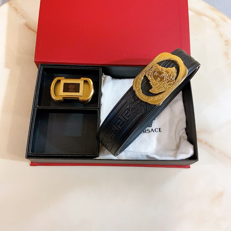 Belt Versace double buckle, high-end original single belt, available at European counters, double-sided Italian imported first-layer cowhide 3.