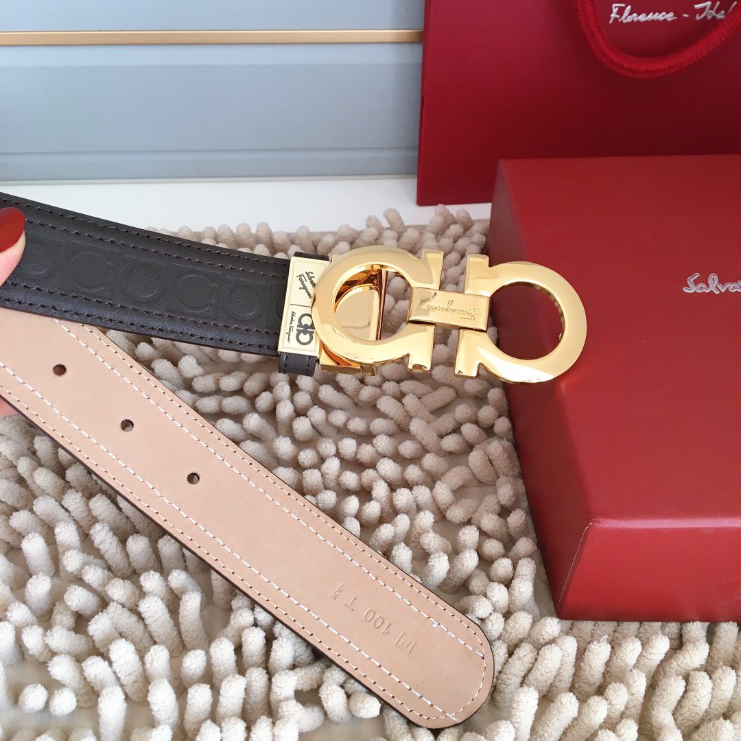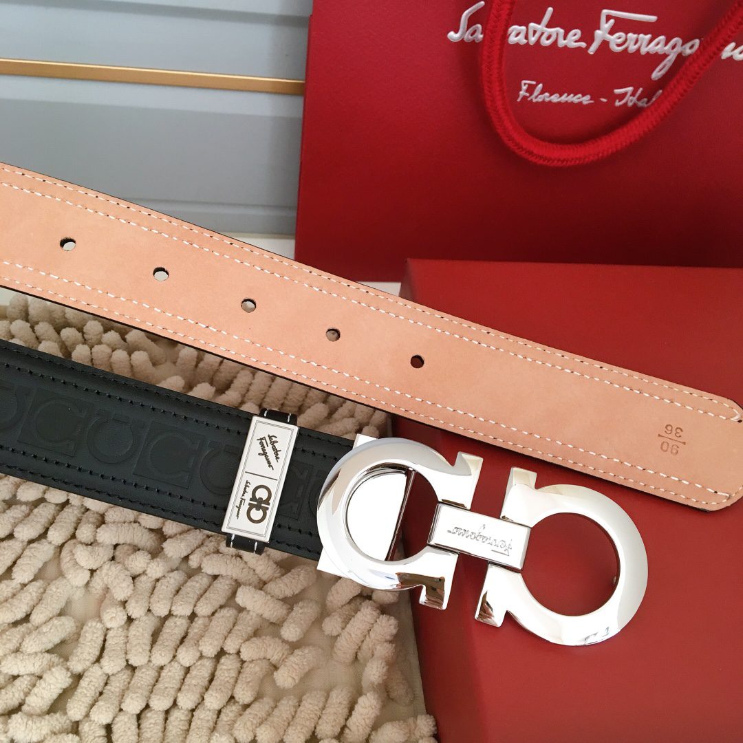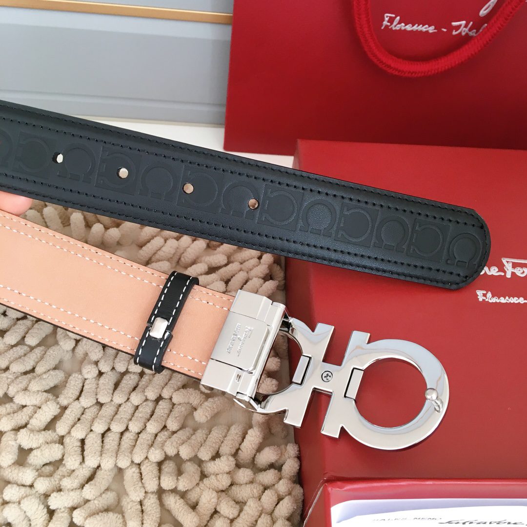 Belt Ferragamo (Ferragamo) double-sided original version, original stitching, 3.4cm same style as in the counter