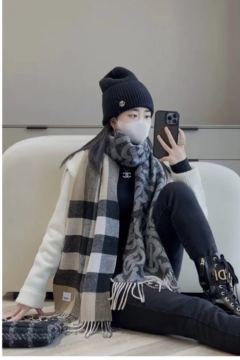 Scarf🧣Top version🧣 p【Light Grey】Double-sided scarf! One side is the latest Tb print and the other side is classic