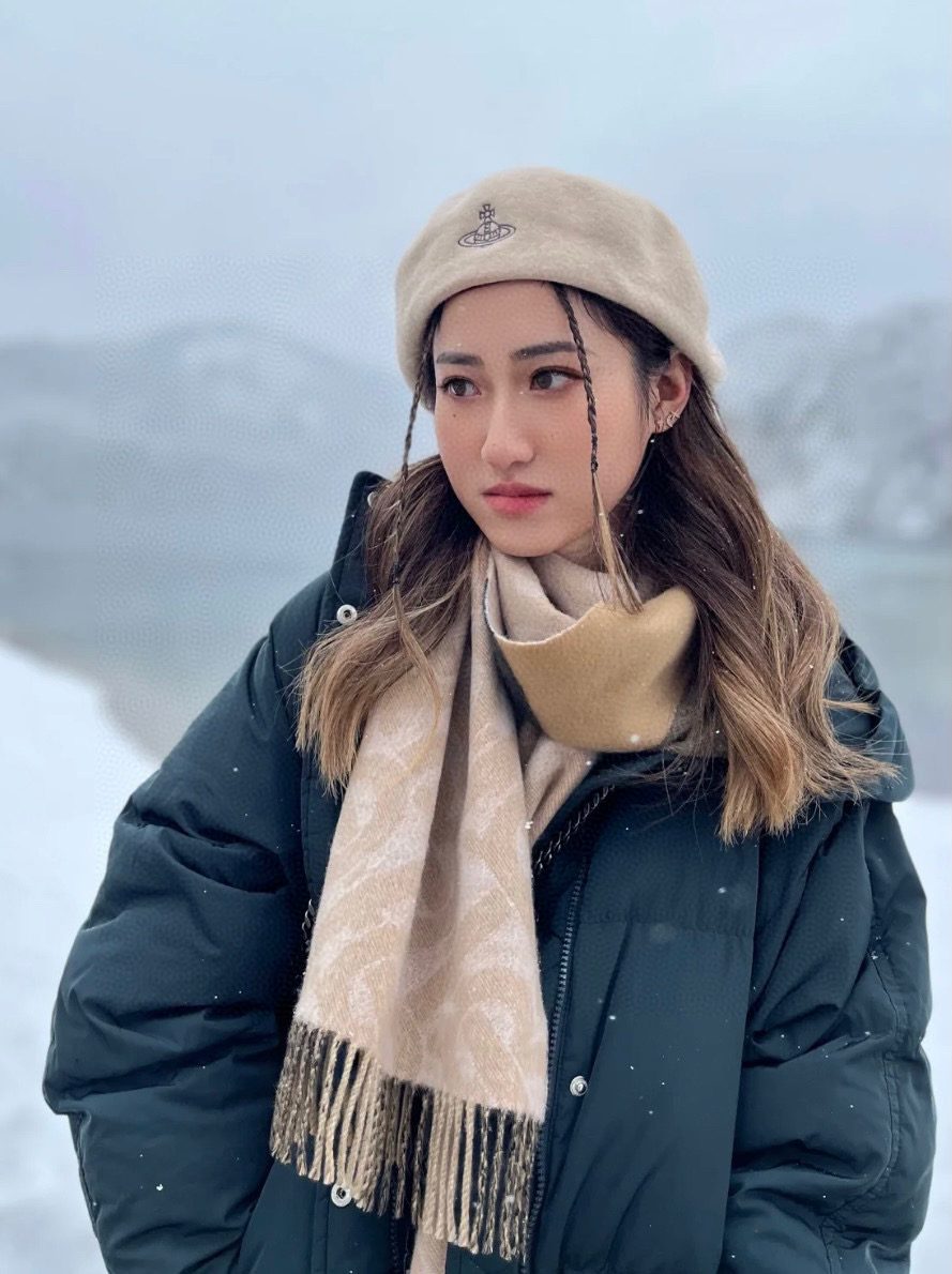 Scarf🧣Top version🧣 p【Apricot】Double-sided scarf! One side is the latest Tb print and the other side is classic
