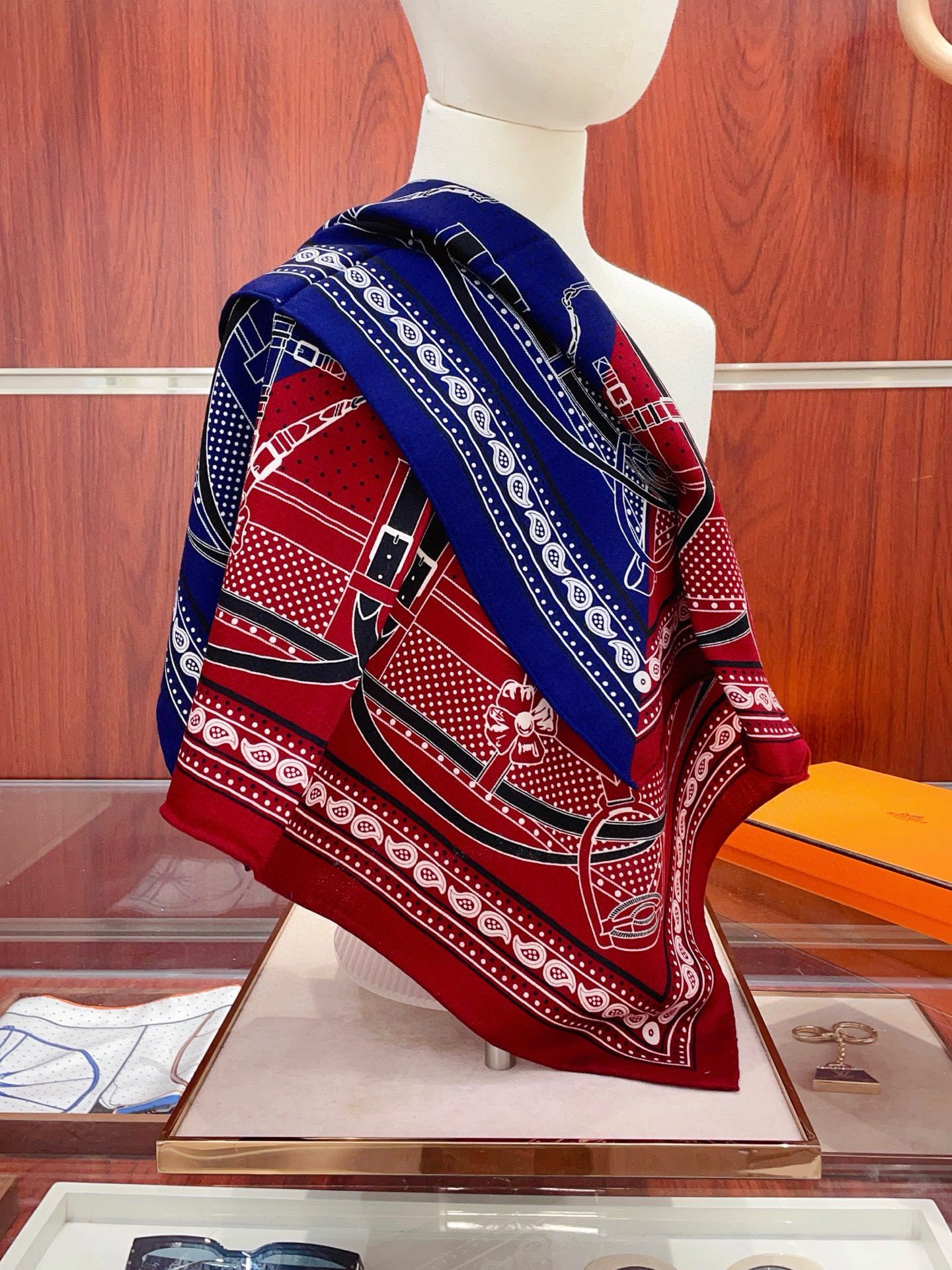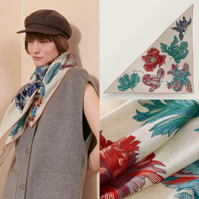 Scarf🧣Top version🧣 p [silk wool style, double-sided same color] new product H family [small square scarf] autumn and winter