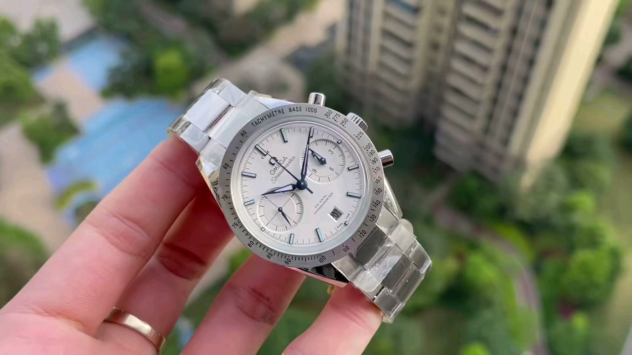 The all-white design of the Omega Speedmaster series is low-key and somewhat domineering.