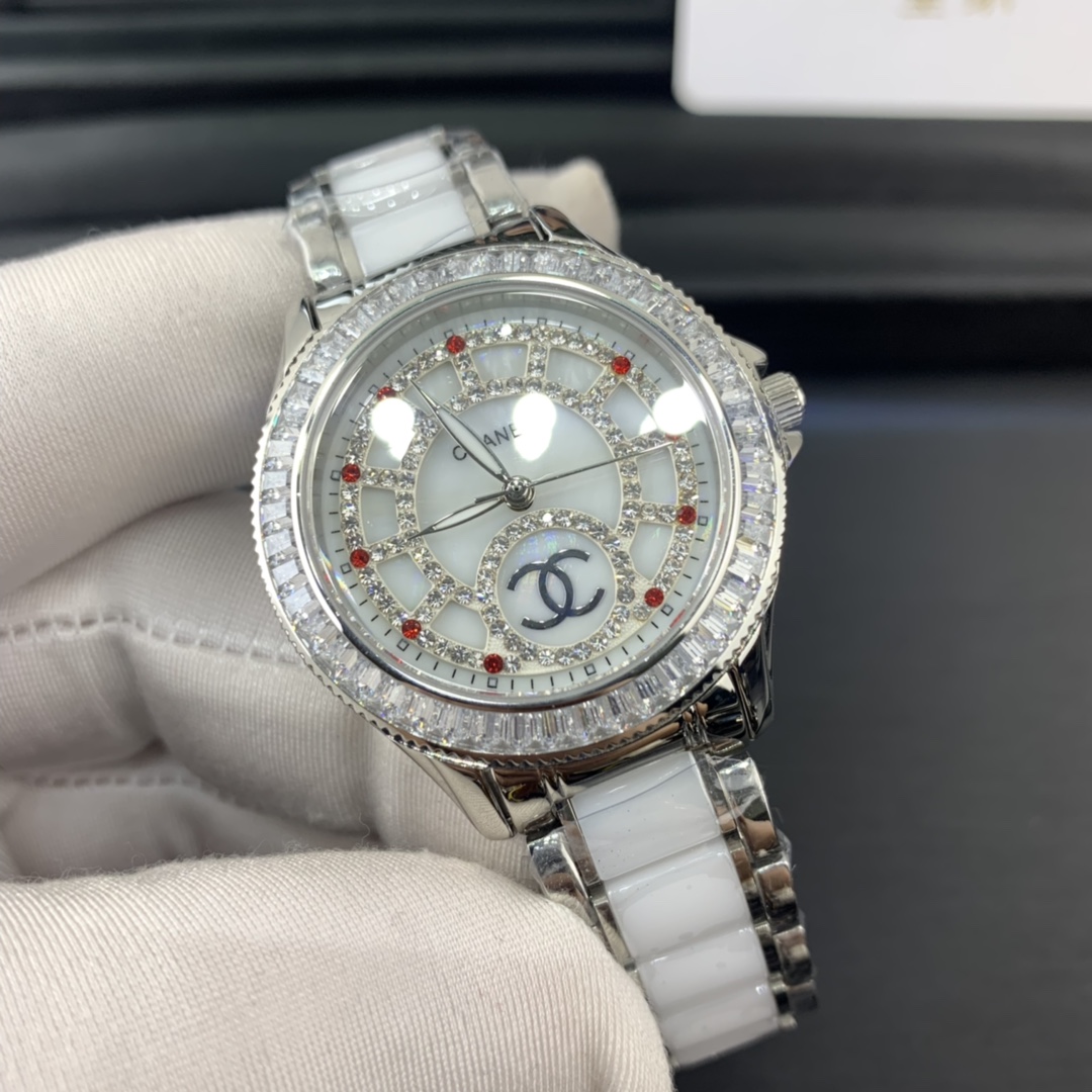 Chanel’s latest ceramic temperament women’s watch mm3 stainless steel case hand-made fully inlaid with Swarovski