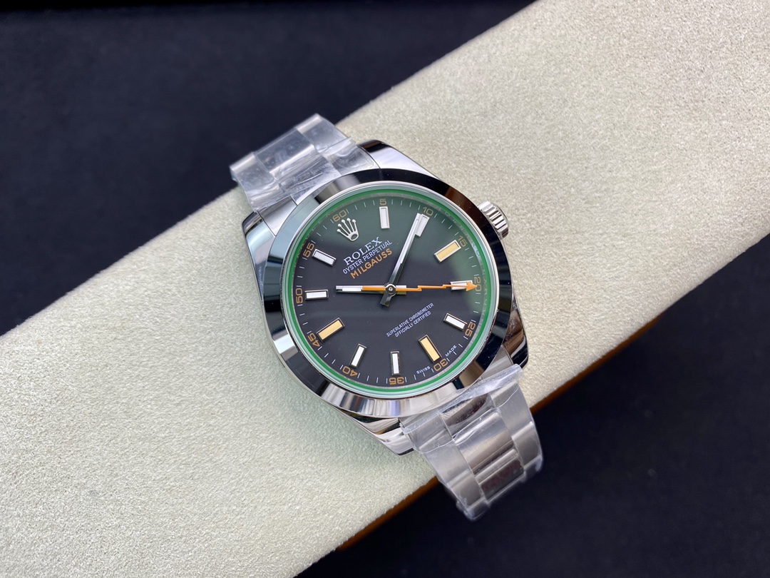 Lightning series green glass, official model: 0GV-72400 The dial is really a highlight from the outside. The Oyster Perpetual Milgauss