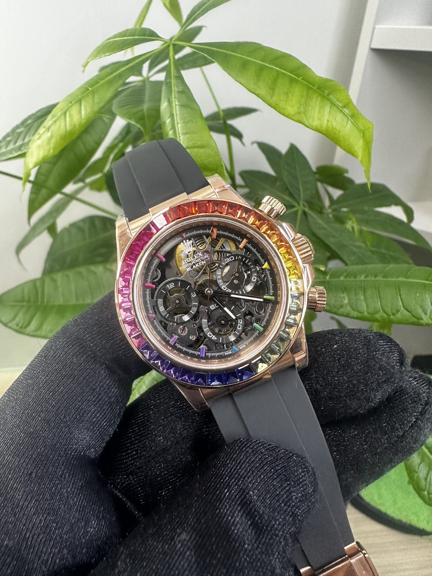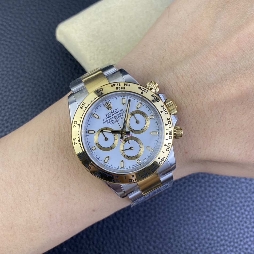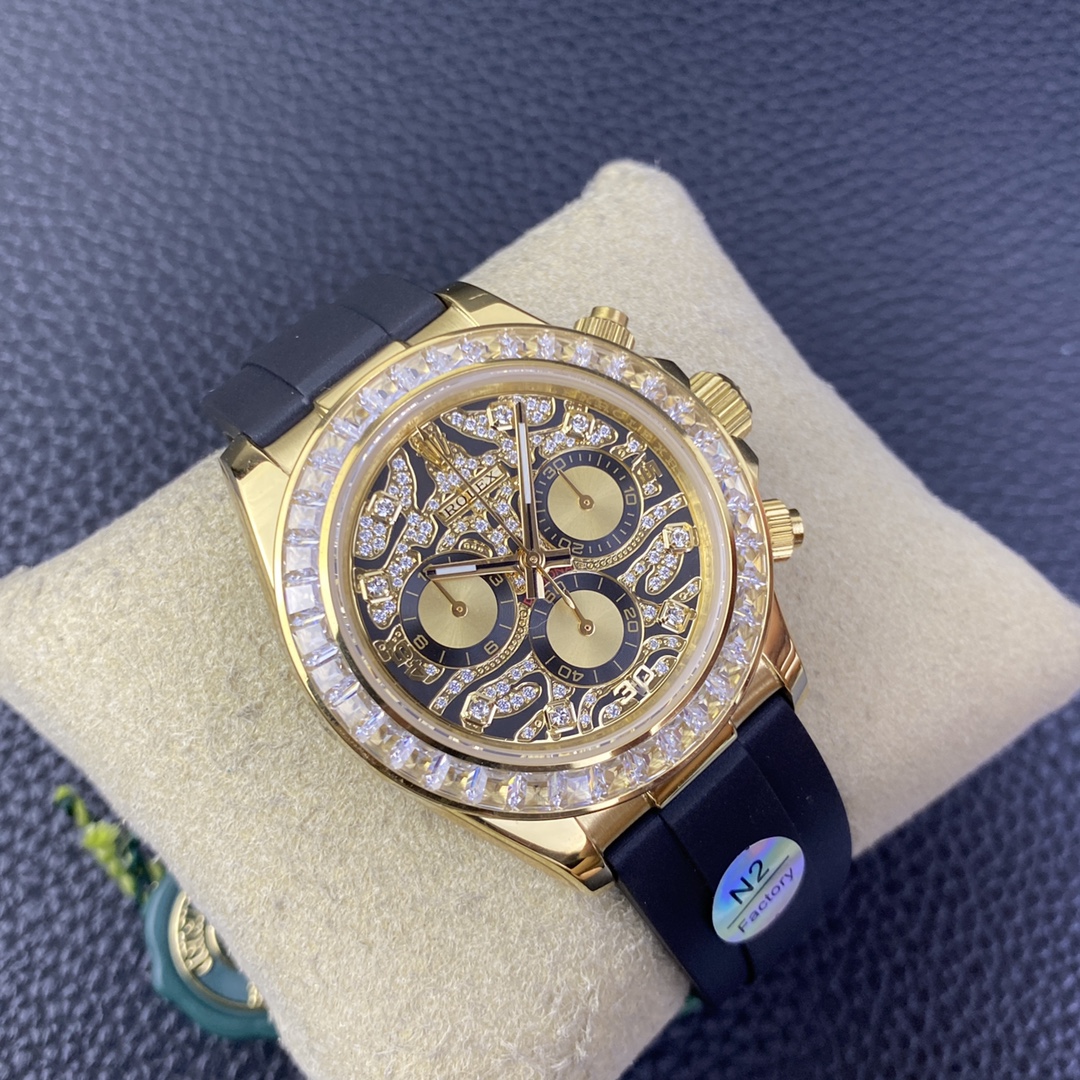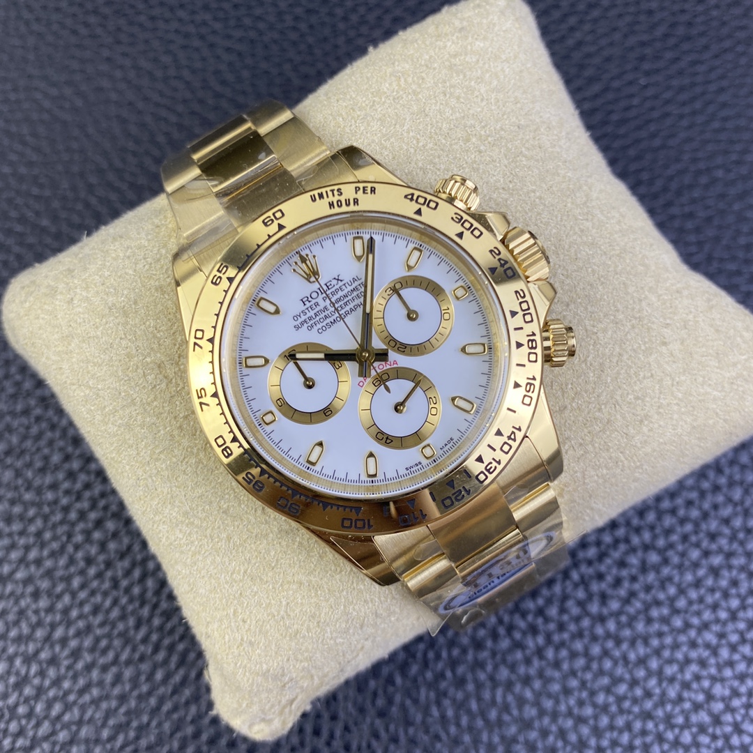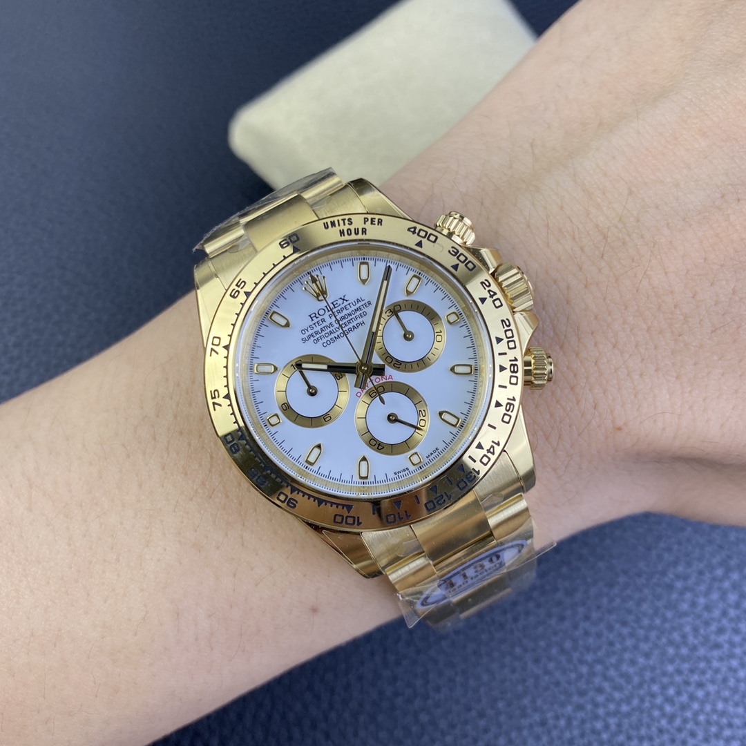 clean_C factory 8 full gold ivory white face Daytona has color difference. The diamond uses flat moissanite. The fire effect