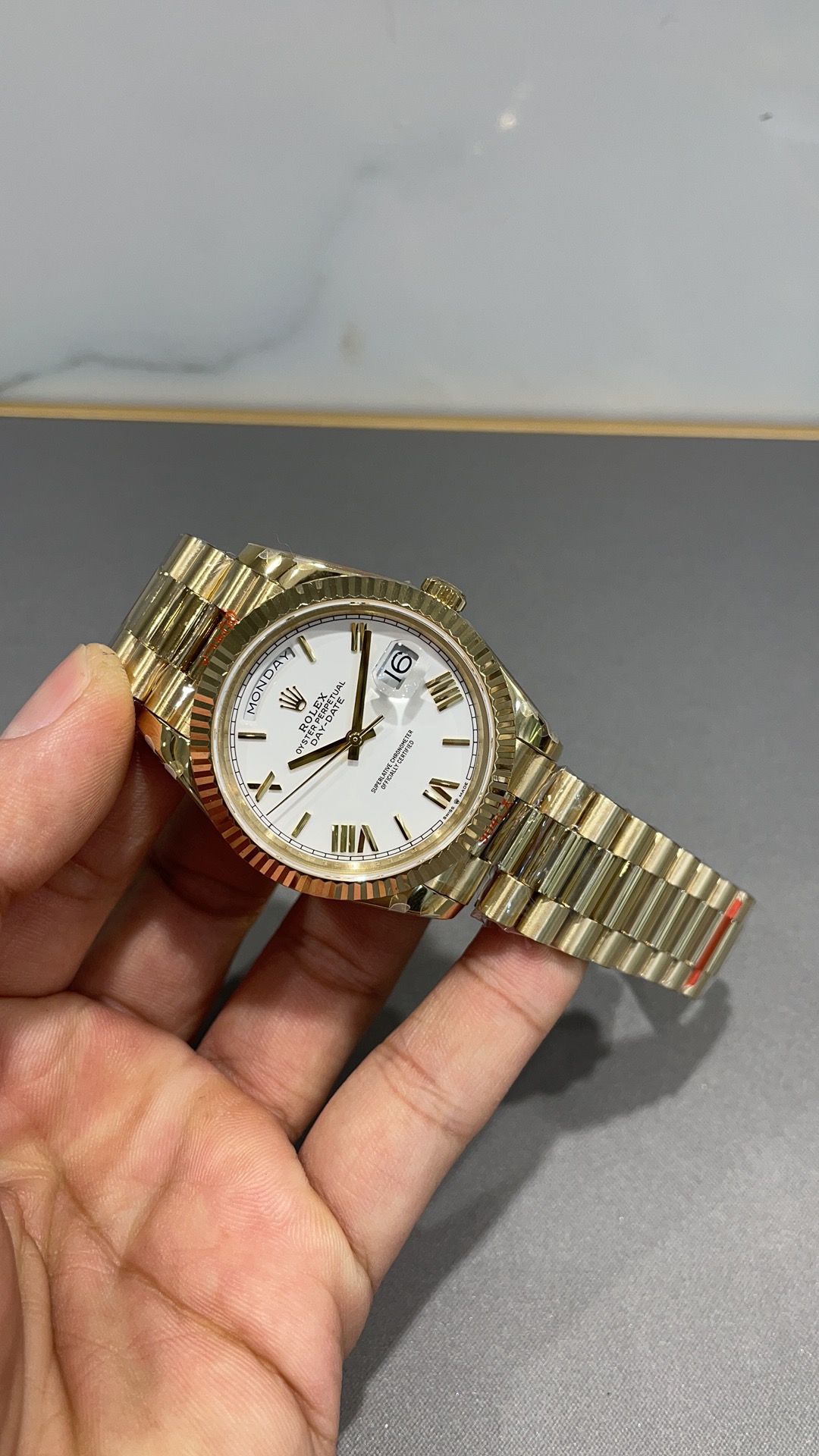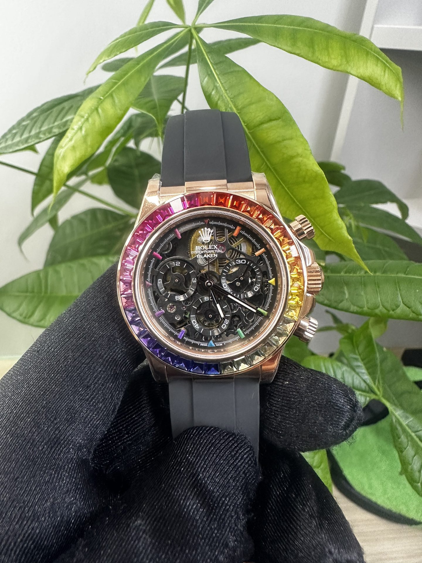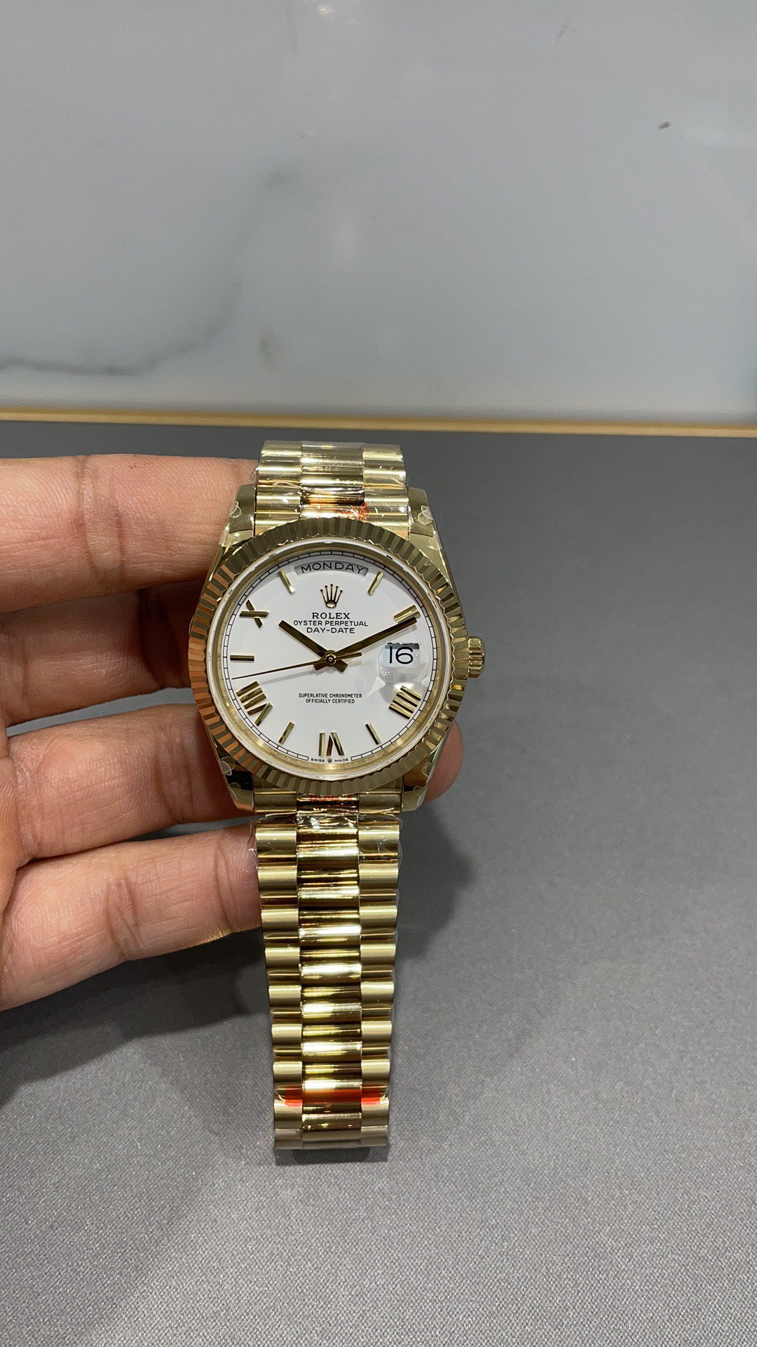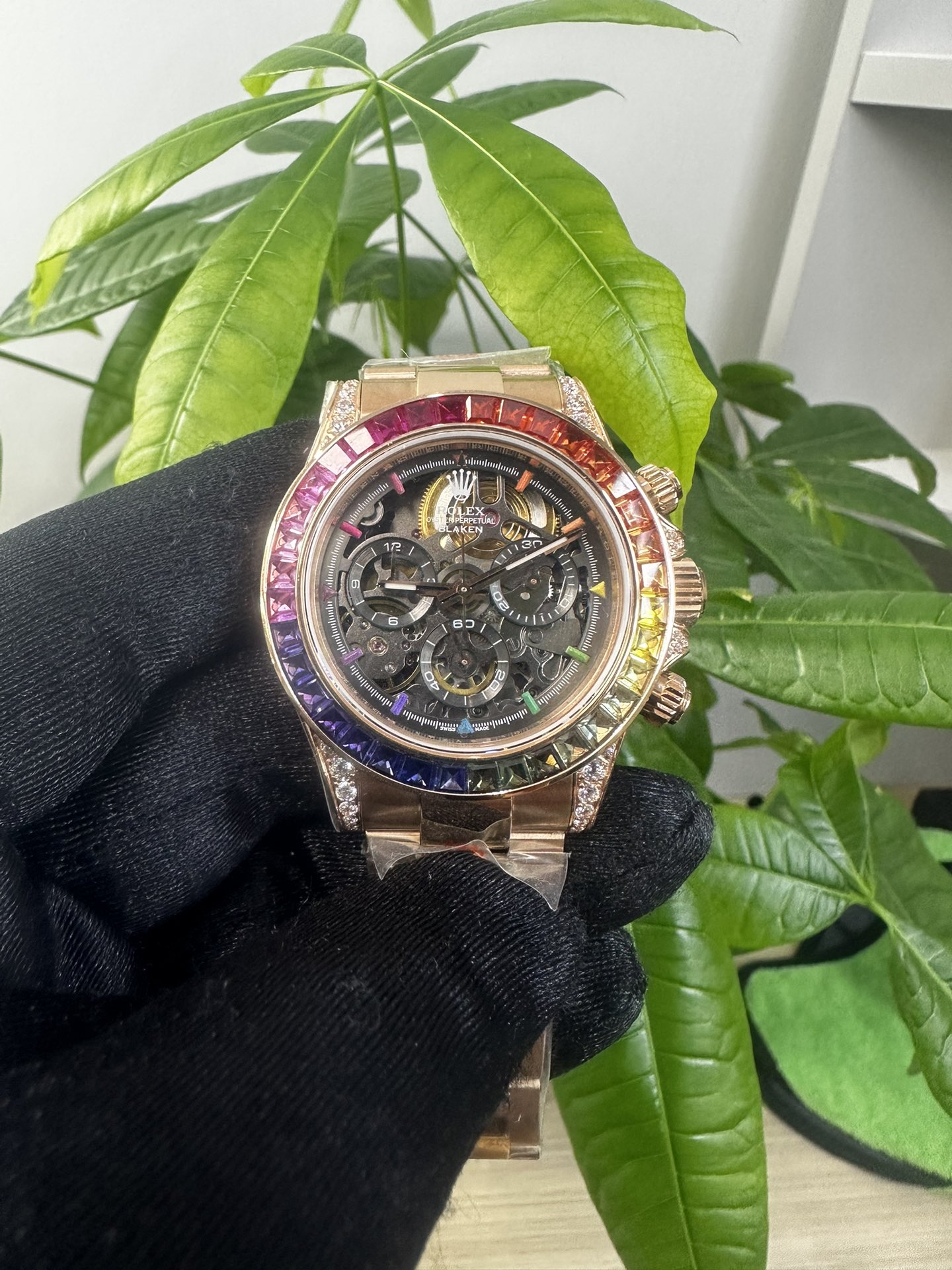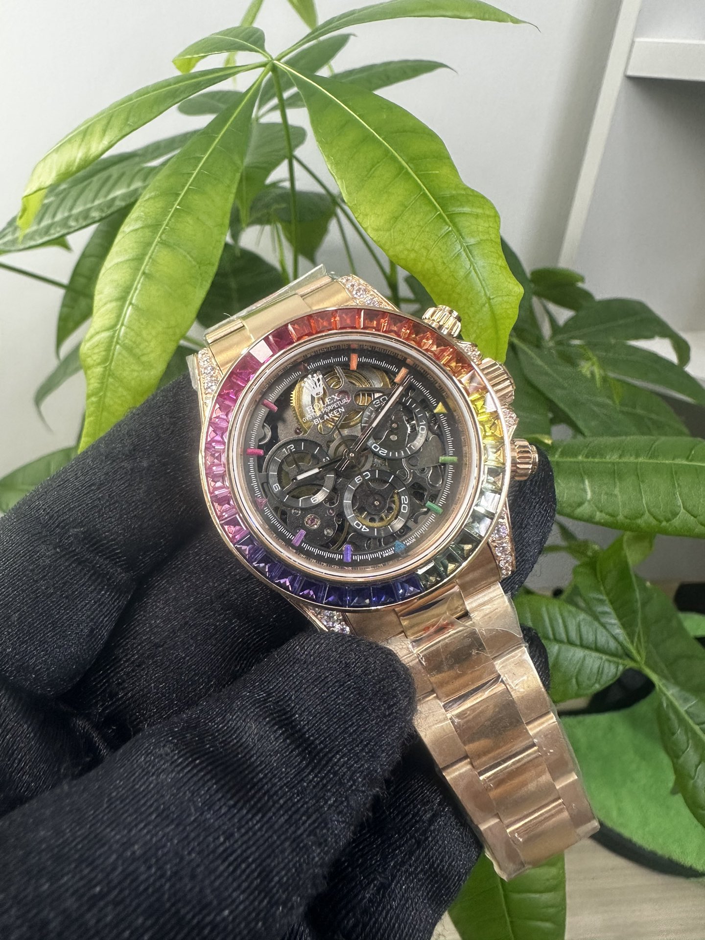 clean_C factory 8 full gold ivory white face Daytona has color difference. The diamond uses flat moissanite. The fire effect