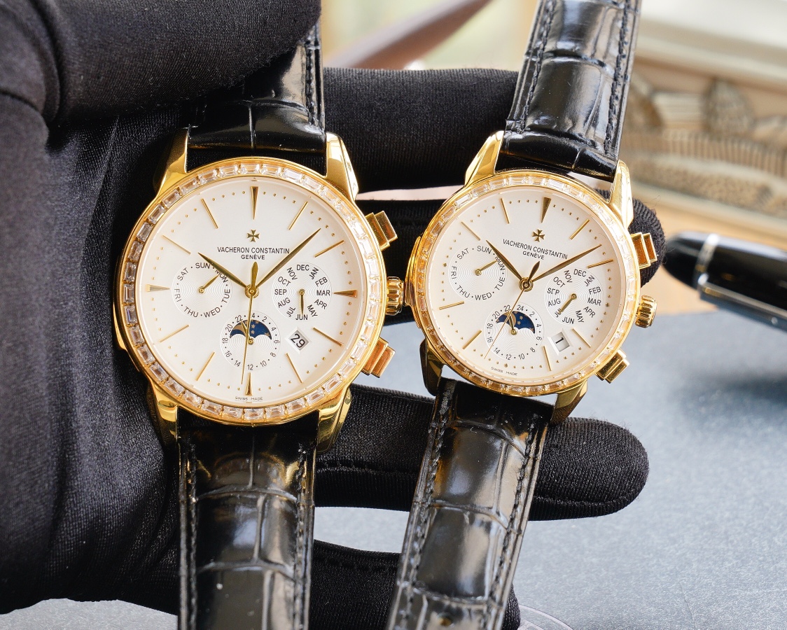 Exclusively developed Vacheron Constantin heritage upgraded version of complex function chronograph series is launched P perpetual calendar couple watch! Small
