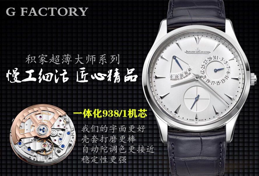 The [GF Jaeger-LeCoultre Clown] Master Ultra Thin Réserve de Marche ultra-thin master series power reserve display watch perfectly integrates pure