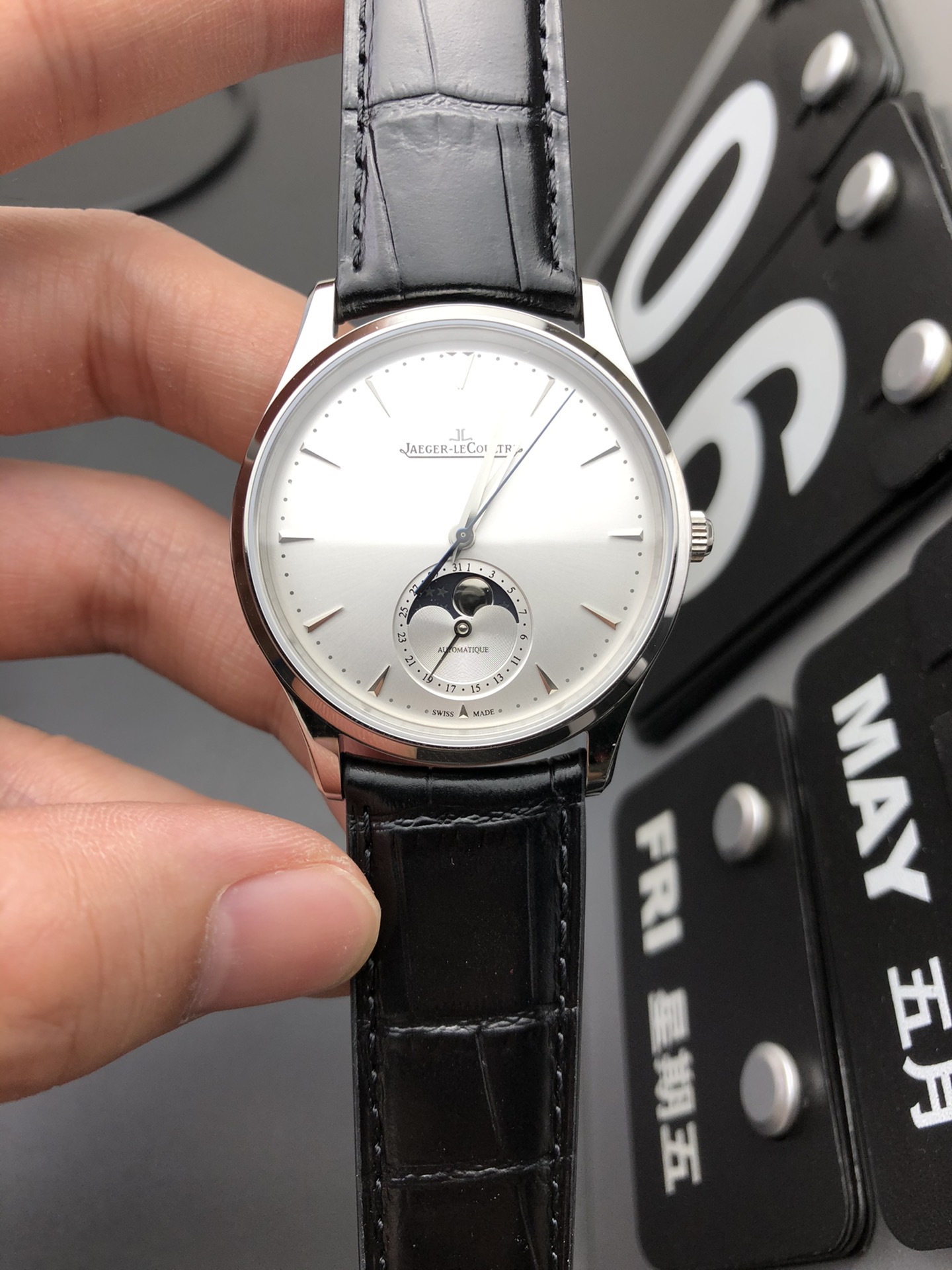 The Jaeger-LeCoultre Ultra-Thin Master Series comes with a crocodile leather strap and a cowhide strap. The case diameter is 40mmX8mm,