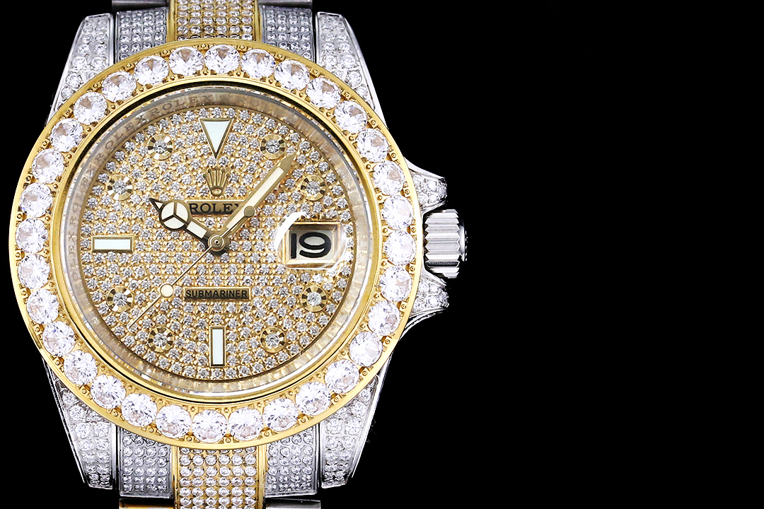 The ROLEX luxury ultimate starry version watch is made of 904 stainless steel and paved with top-grade Swarovski diamonds. It