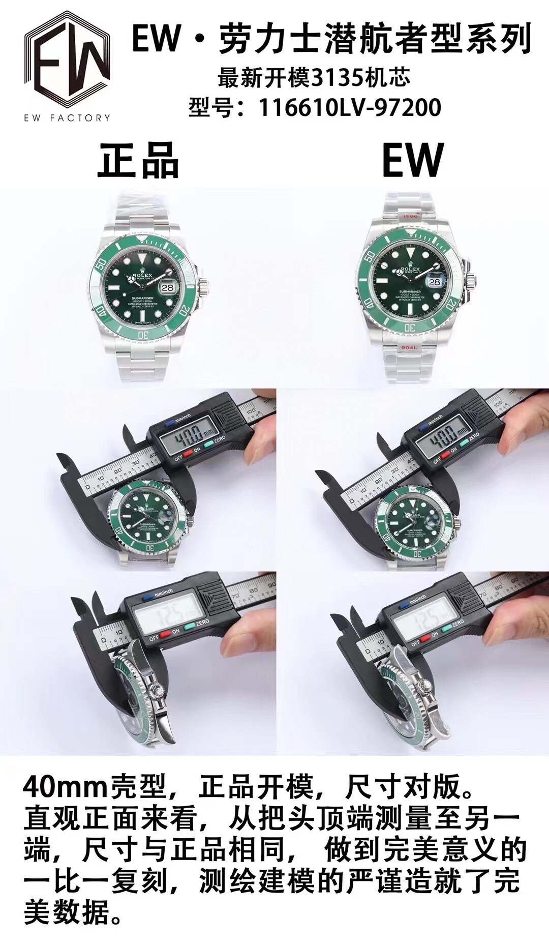 EW Rolex Submariner 40 series v2 version (original mold opening, size and thickness matching original) 1⃣️matching