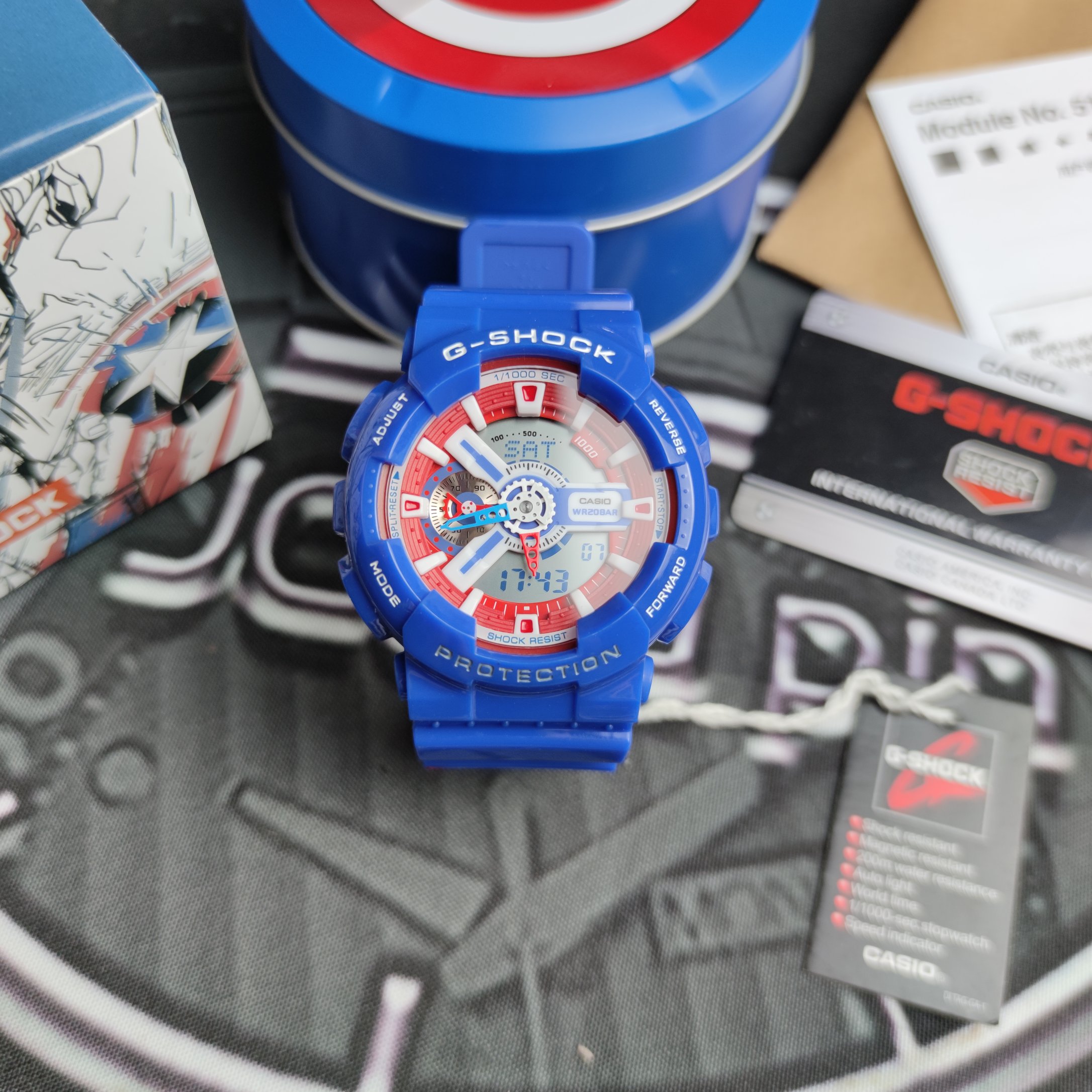 GM model No. 75 Marvel Captain America, 45-degree automatic light-up function, G-SHOCK–