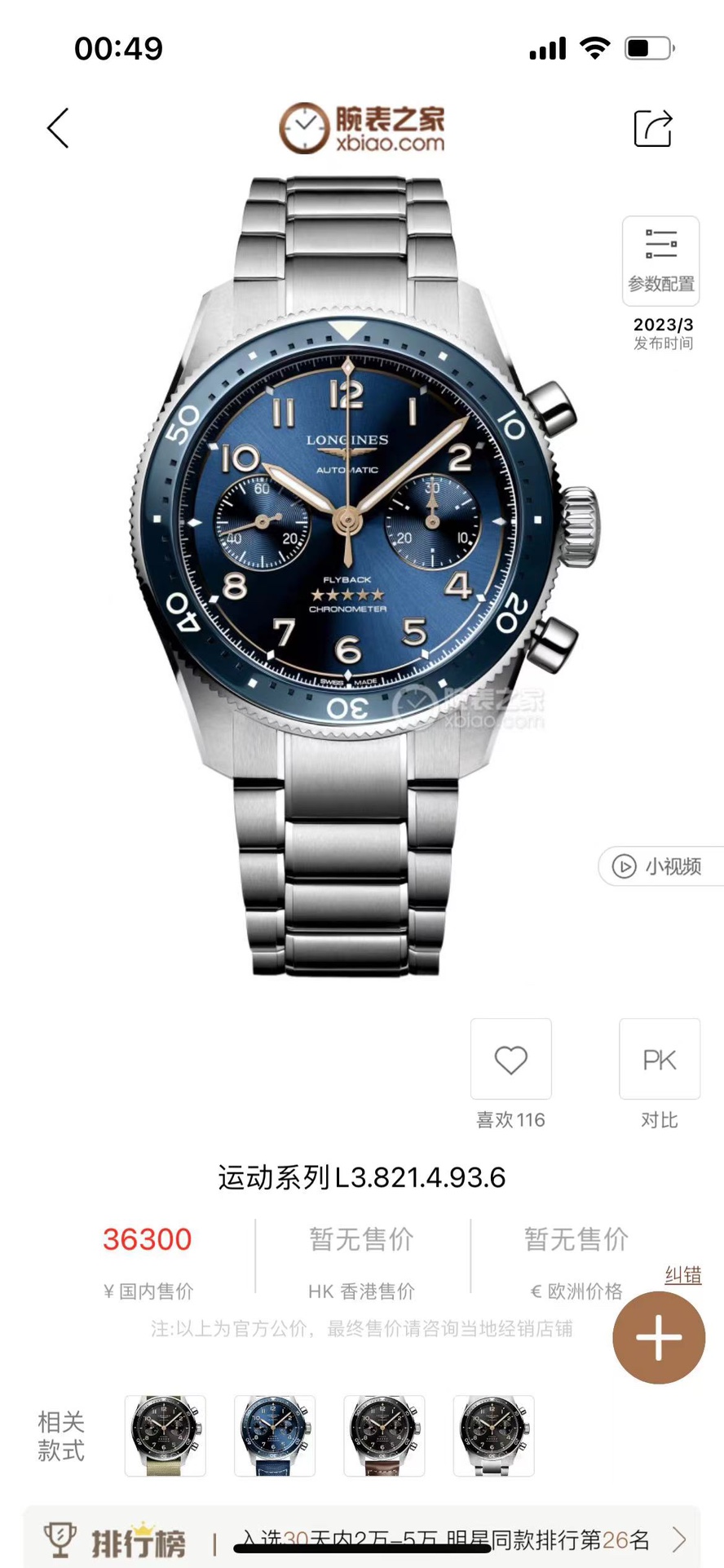 [Advancing quality and experiencing classics] LONGINES classics, Jialan series, using Swiss ETA2824 mechanical movement, % guaranteed, diameter mm, thickness mm