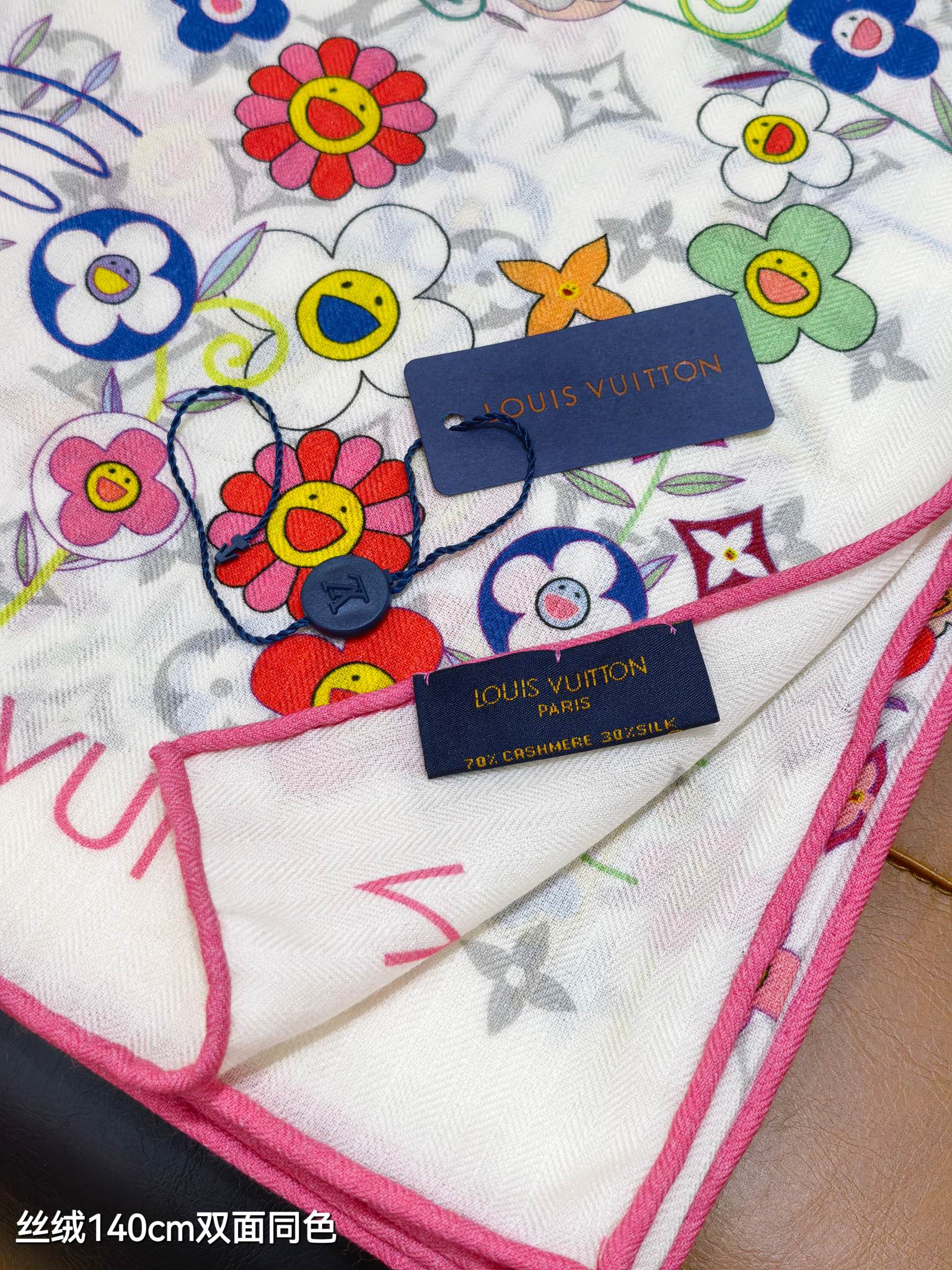 2xcm 70% cashmere% silk LV x TM “Monogram Suerflat Smiling Flower”