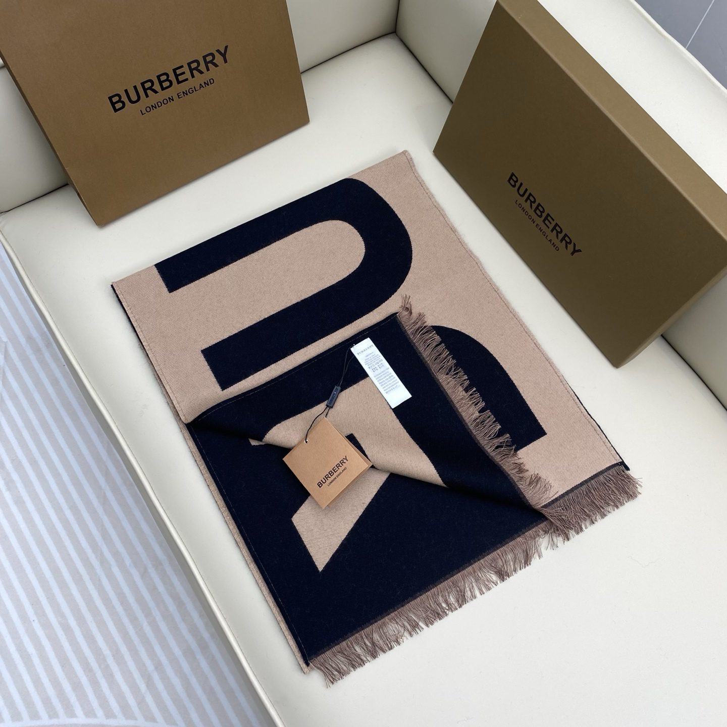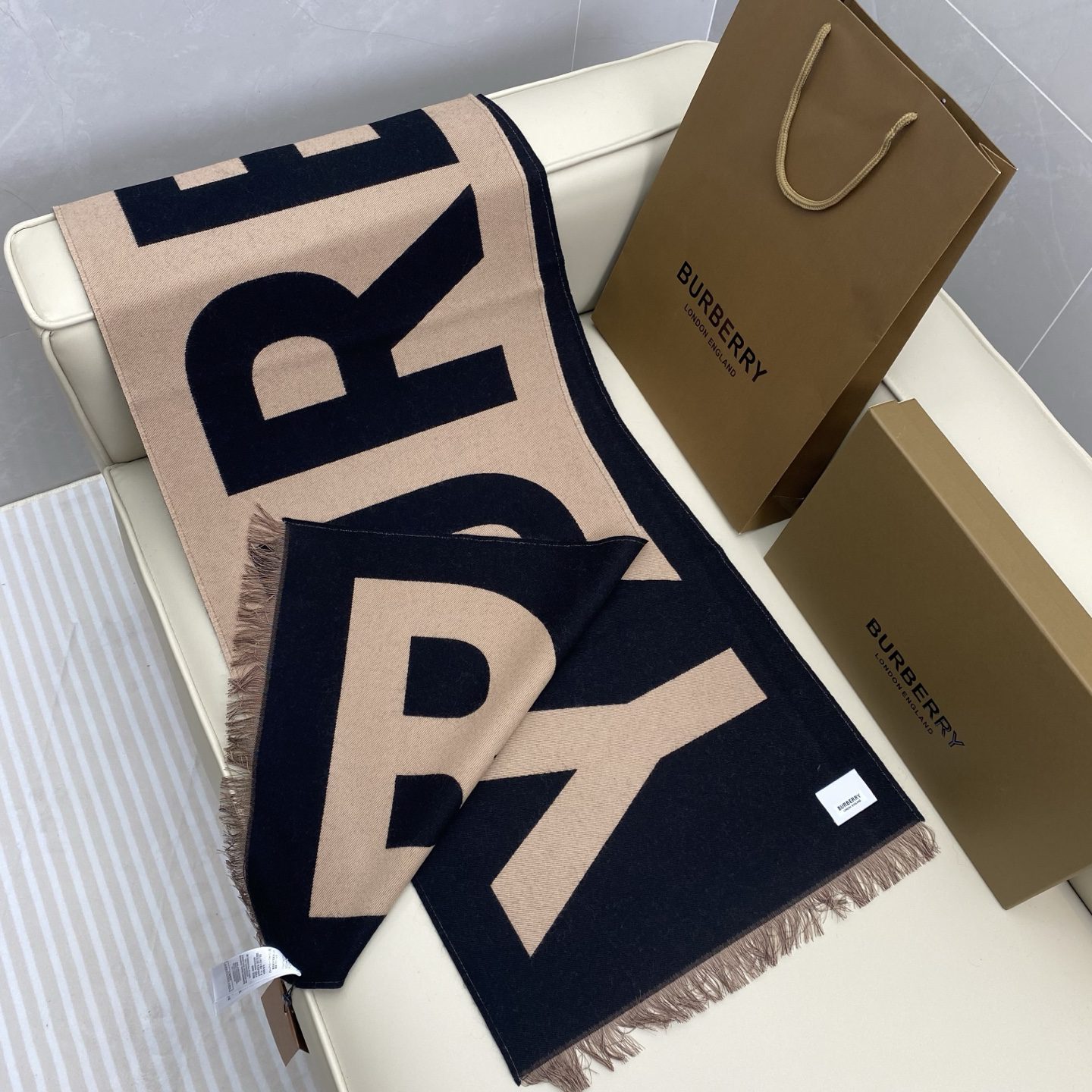 Scarf𝐁𝐮𝐫𝐛𝐞𝐫𝐫. “Double-Sided Large Letter Scarf” Black Brown Siz
