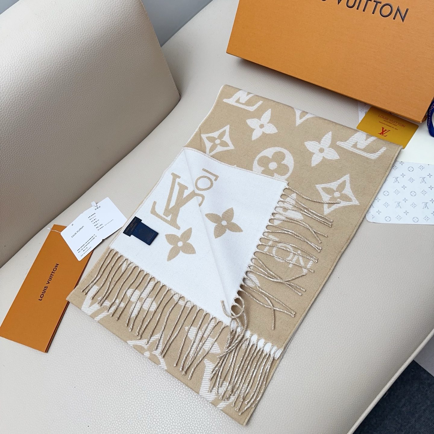 🧣 Value-for-money and mass-produced model 🧣 It has finally been shipped. It will be launched on August 26th. This year’s most popular scarf, this LVEssential scarf, focuses on the big things. It uses the Monogram pattern and the Louis Vuitton logo to declare the brand’s heritage. It is paired with soft tassel trim, making it a casual choice besides the Reykjavik scarf. 0% wool fringed trim
