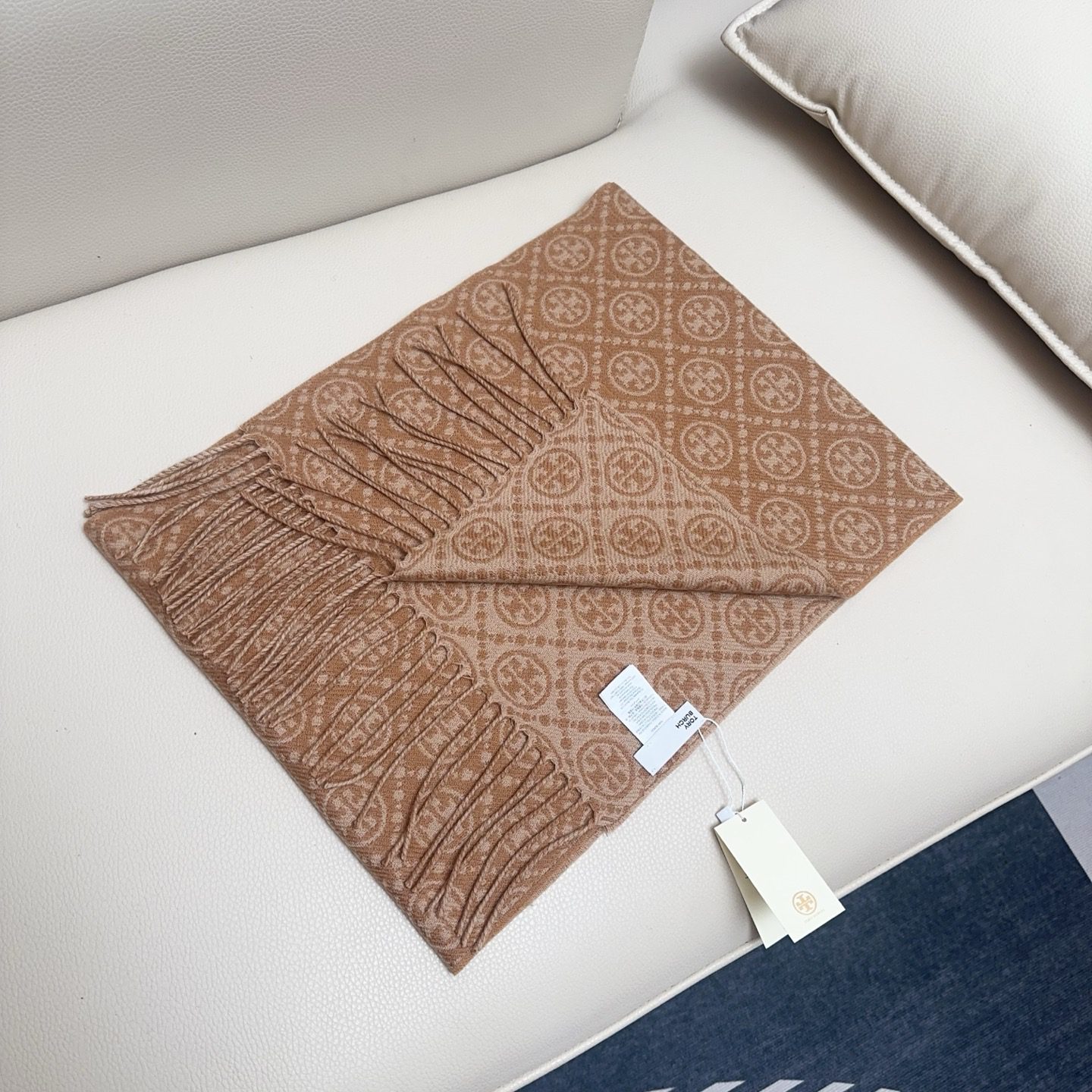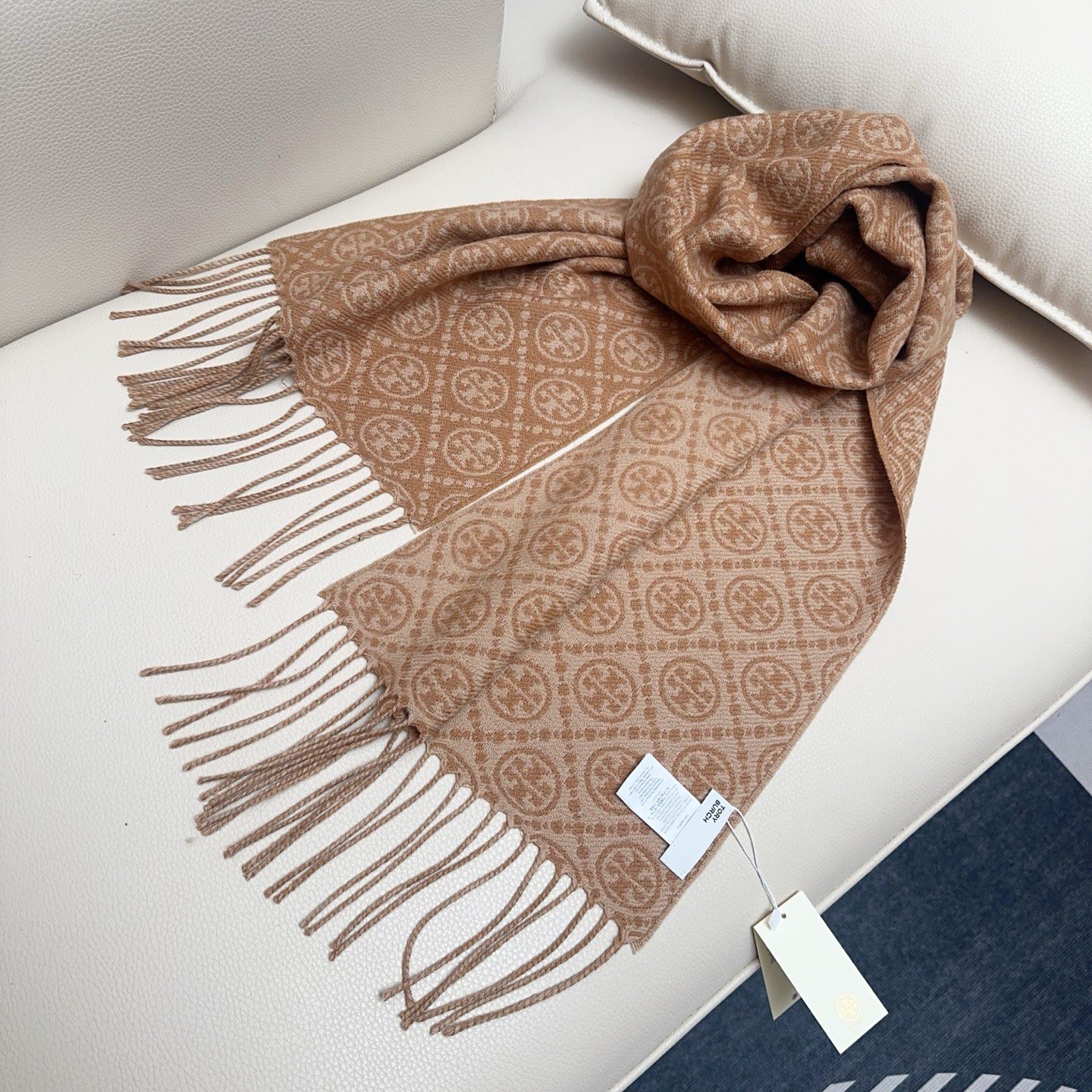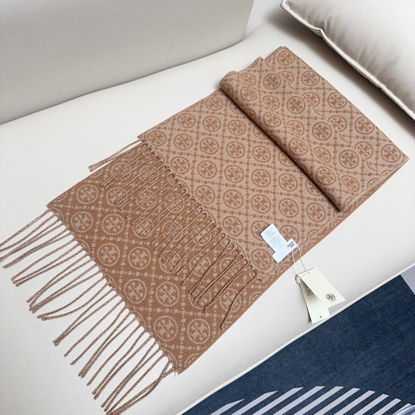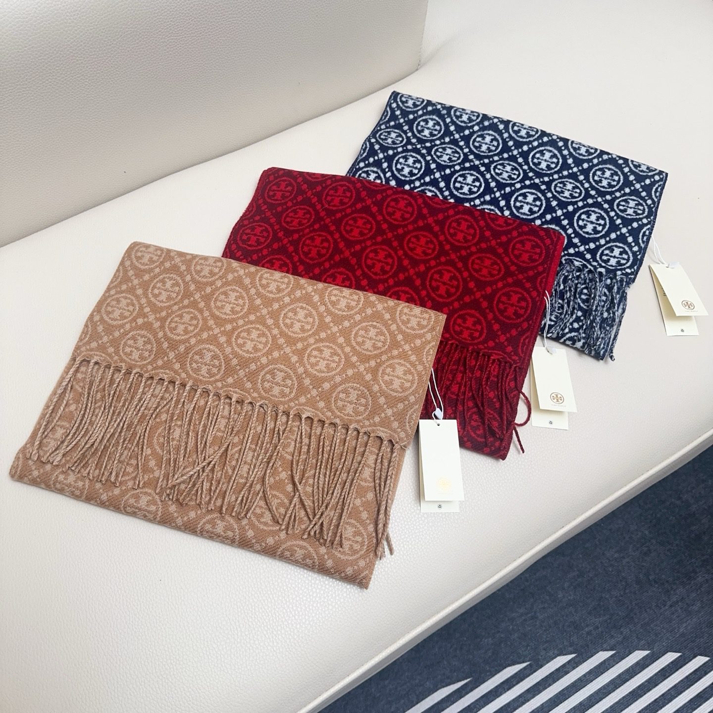 🧣 Value for money and affordable 🧣 TORY BURCH.TB new double-sided scarf navy blue material: 50% wool + 50% cotton size: CM light luxury matching, simple shades of printed large logo on the upper body is very elegant, super versatile, a light luxury choice for personalized ladies, unobtrusive, highlighting gentle temperament!