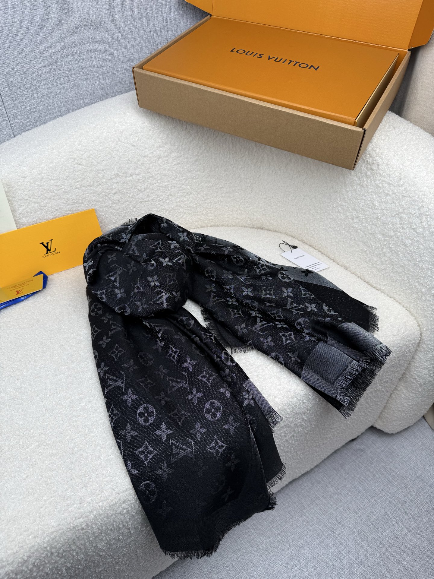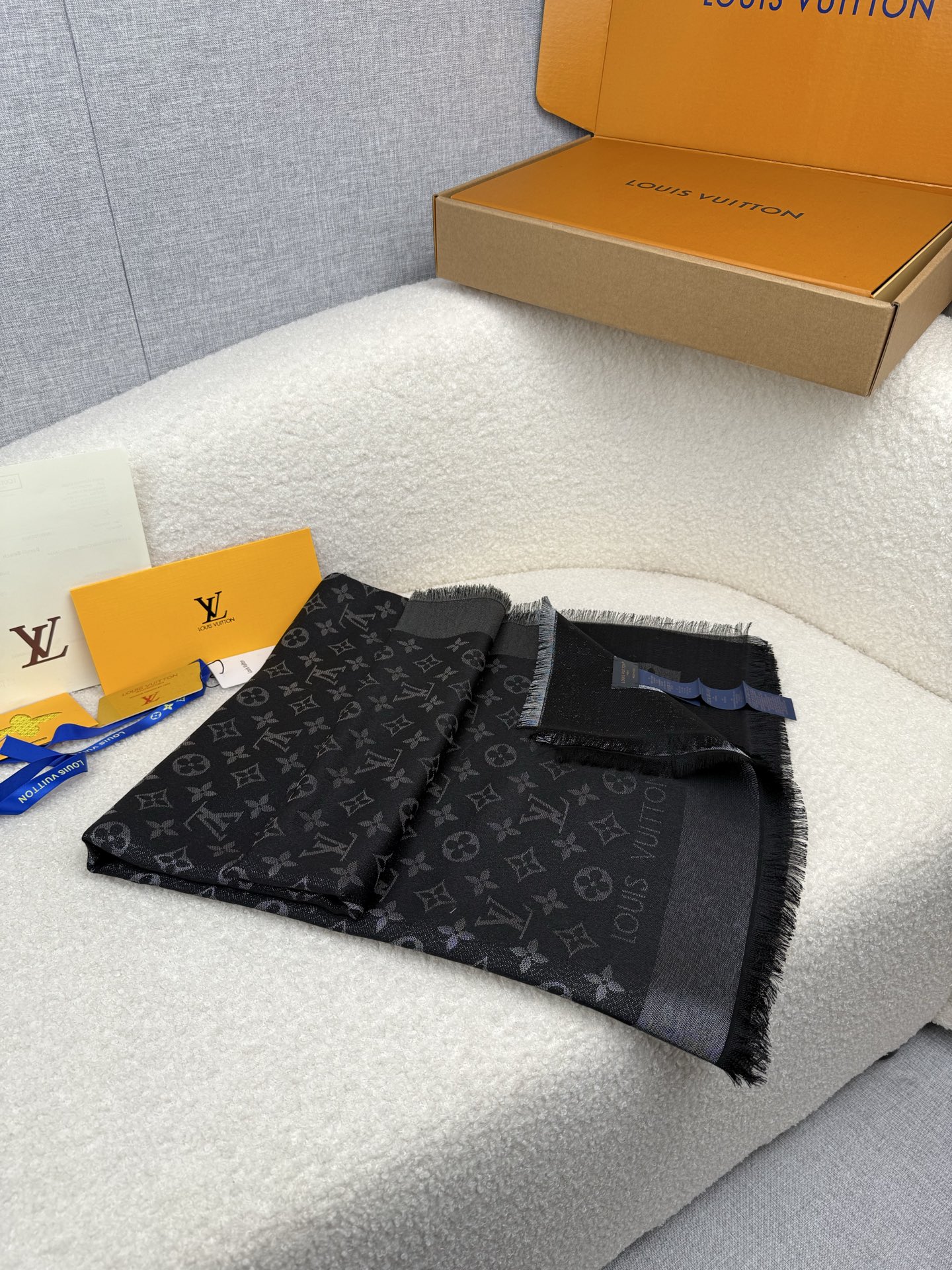 🧣Higher version thicker🧣 ¥250. Louis Vuitton. [Classic Black Silver] [LV Classic Presbyopia Filigree Square Scarf] High version! ! A classic from the Donkey family! The beloved model and actress from Europe, America, the Middle East and the world! It can be said that a woman without this scarf cannot say that she likes silk scarves! Lvjia’s styles are constantly being updated, but this model is the only Lvjia style that updates its colors every year and is still very popular! It is truly versatile, fashionable and practical! Cashmere silk lurex! cm, feels super soft! There are so many materials and prices for this model on the market! Many people are easily confused by the price. I just want to say that my price is definitely worthy of the quality you get! !