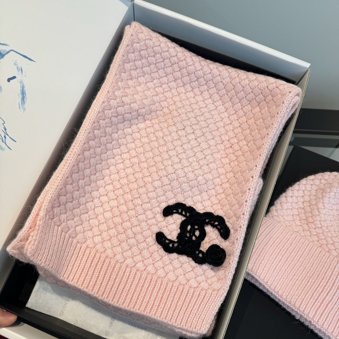 🧣The top version on the market🧣 280¥Chanel2025 official new scarf and hat set, 100% cashmere, warm and super comfortable~A magical tool for young ladies to reduce age in winter~This is the only thing you need this winter~warm and fashionable! Universal model! Can be made as a couple model! Complete range of anti-counterfeiting labels and elevators!
