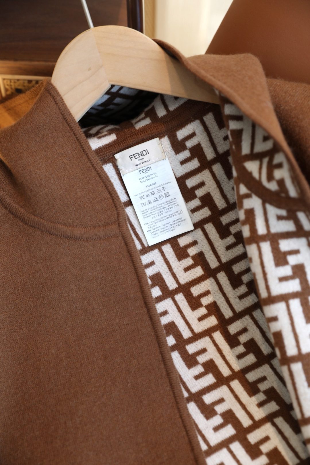 🧣Top cashmere version🧣 p4FENDl double-sided wool and cashmere blended knitted jacket cape. It feels soft, comfortable and delicate. It is a cost-effective size one-size-fits-all cape. It has a very fashionable print and is so beautiful! It’s very versatile, whether it’s a dress, a miniskirt, or shorts and boots, it’s very versatile! Extremely fashionable, can be used on both sides ~ super texture