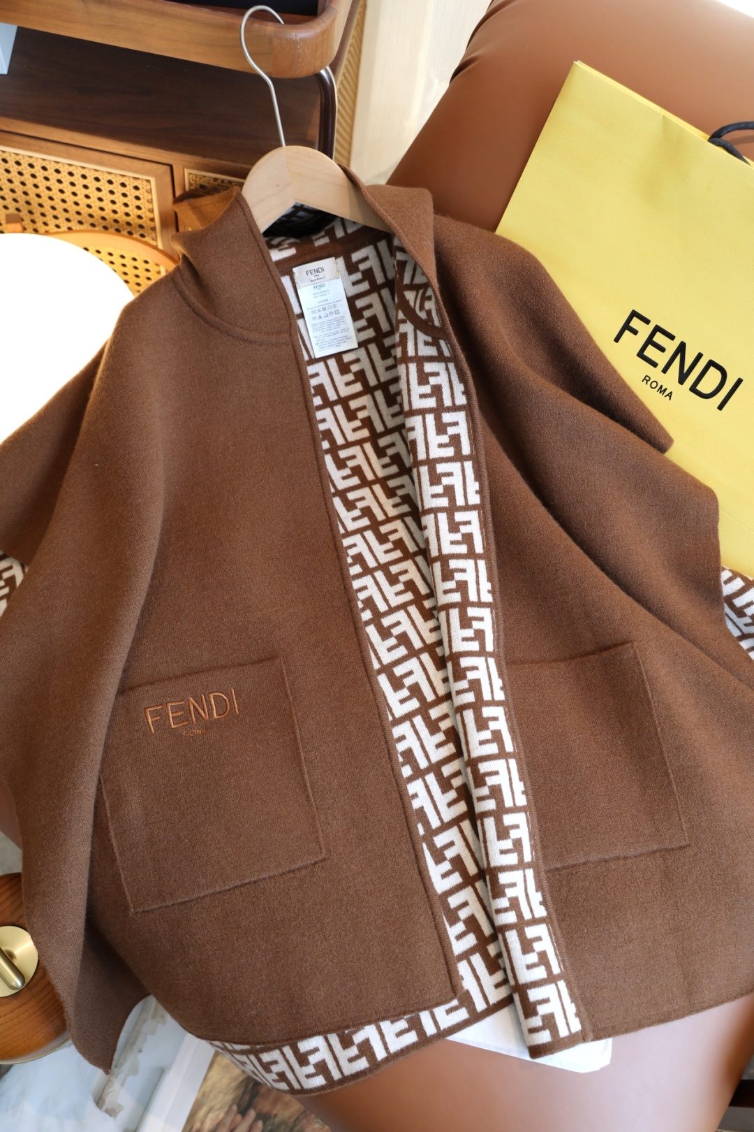 Scarf🧣Top cashmere version🧣 p4FENDl Double-sided wool and cashmere blend knitted jacket poncho $99.00 Original price was: $99.00.$75.00Current price is: $75.00.