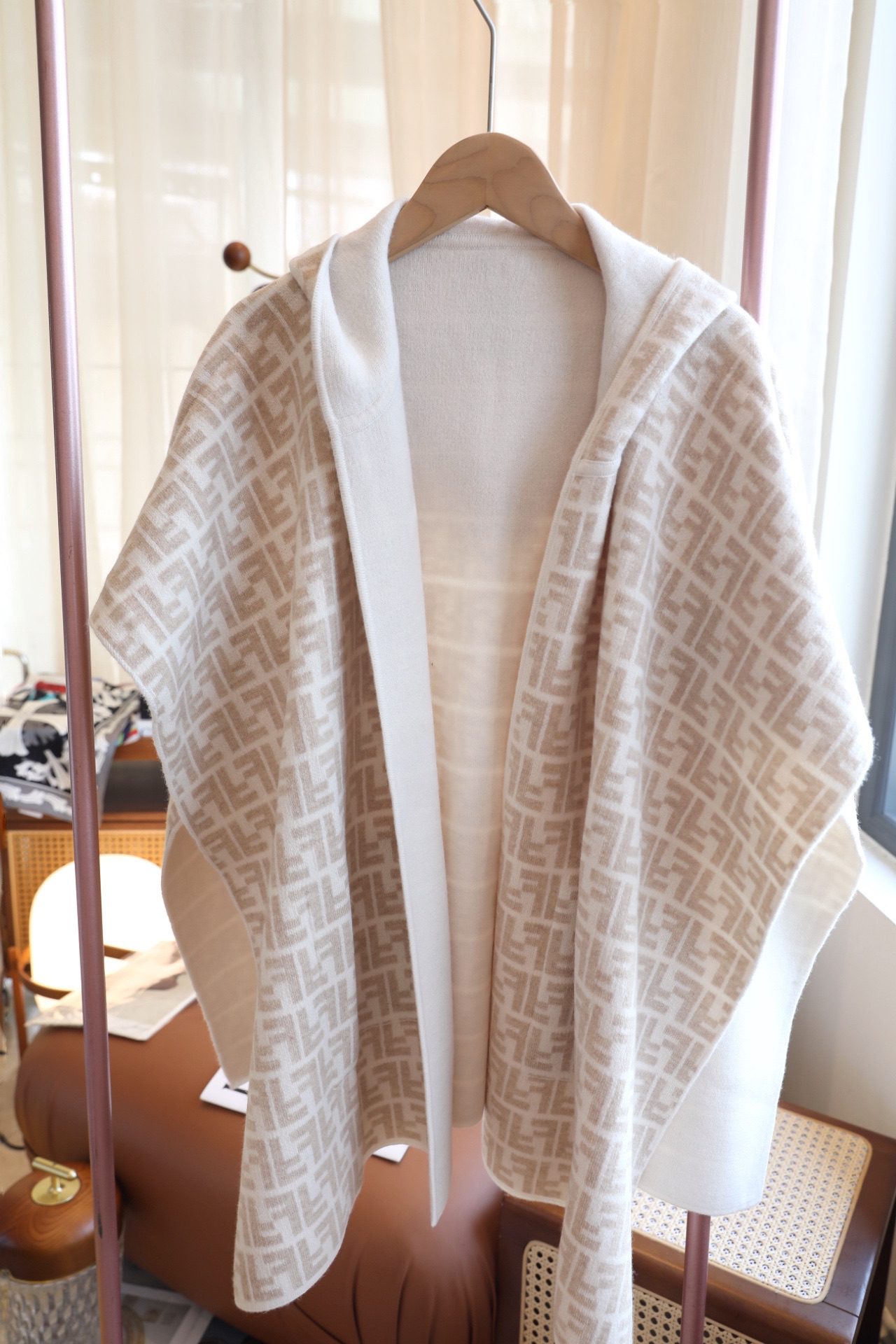 🧣Top cashmere version🧣 p4FENDl double-sided wool and cashmere blended knitted jacket cape. It feels soft, comfortable and delicate. It is a cost-effective size one-size-fits-all cape. It has a very fashionable print and is so beautiful! It’s very versatile, whether it’s a dress, a miniskirt, or shorts and boots, it’s very versatile! Extremely fashionable, can be used on both sides ~ super texture