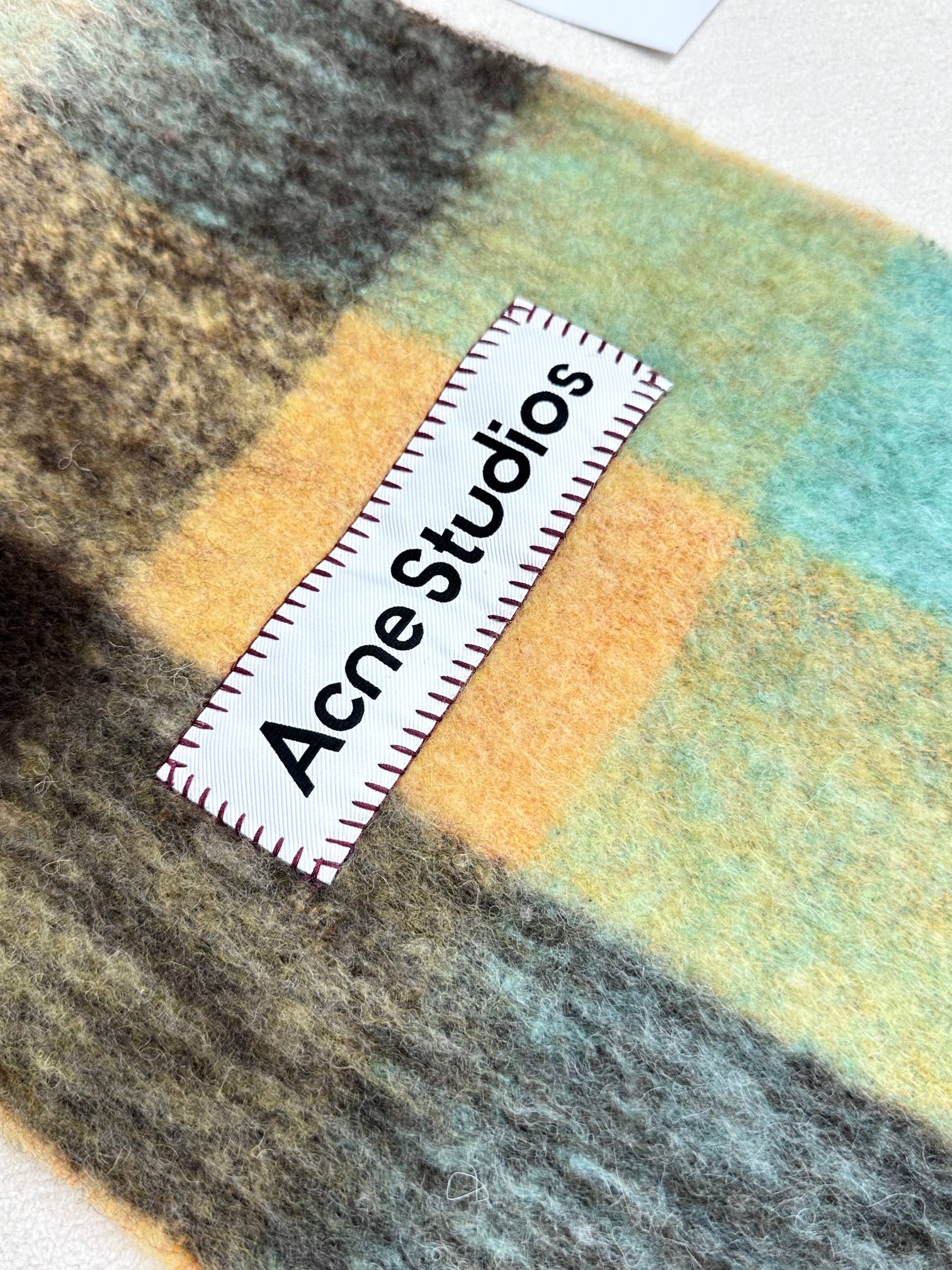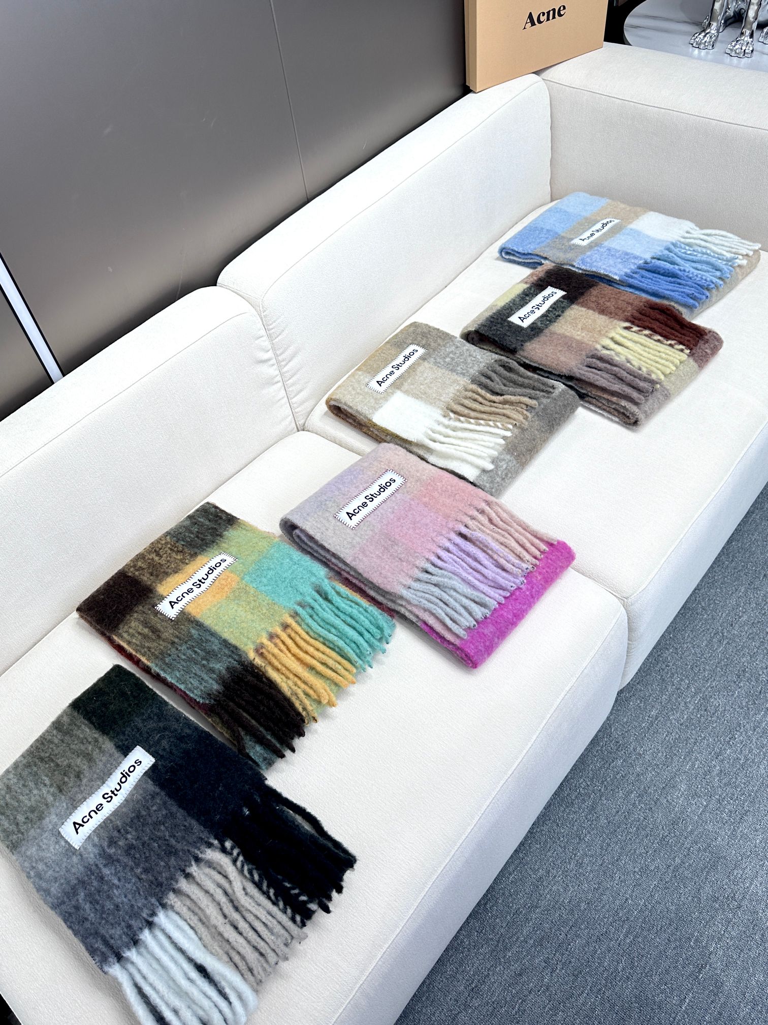 🧣Top cashmere version🧣 02024 hot style arrival! ️Original factory, ACNE new alpaca and mohair rainbow scarf, the warm colors of Stockholm! I fell in love at first sight, super good-looking! Dream color matching, instant sale of all versions on the market, real original products, Acne scarves always surprise people. The classic “Valley” large profile version was born in Italy, blended with Nordic warm color splicing, super versatile, immersed in various color cards, you can bury your head in a big scarf in winter, super warm! The wrapping is high and the face looks smaller! The wool-containing mohair fabric is quite wide and comfortable, and the thick tassels are as cute as shrimp crackers! The hand-wrapped oversized logo is particularly exquisite and surprising! Specifications, 28250cm, composition: % mohair